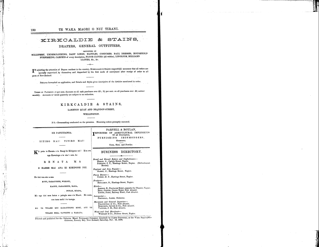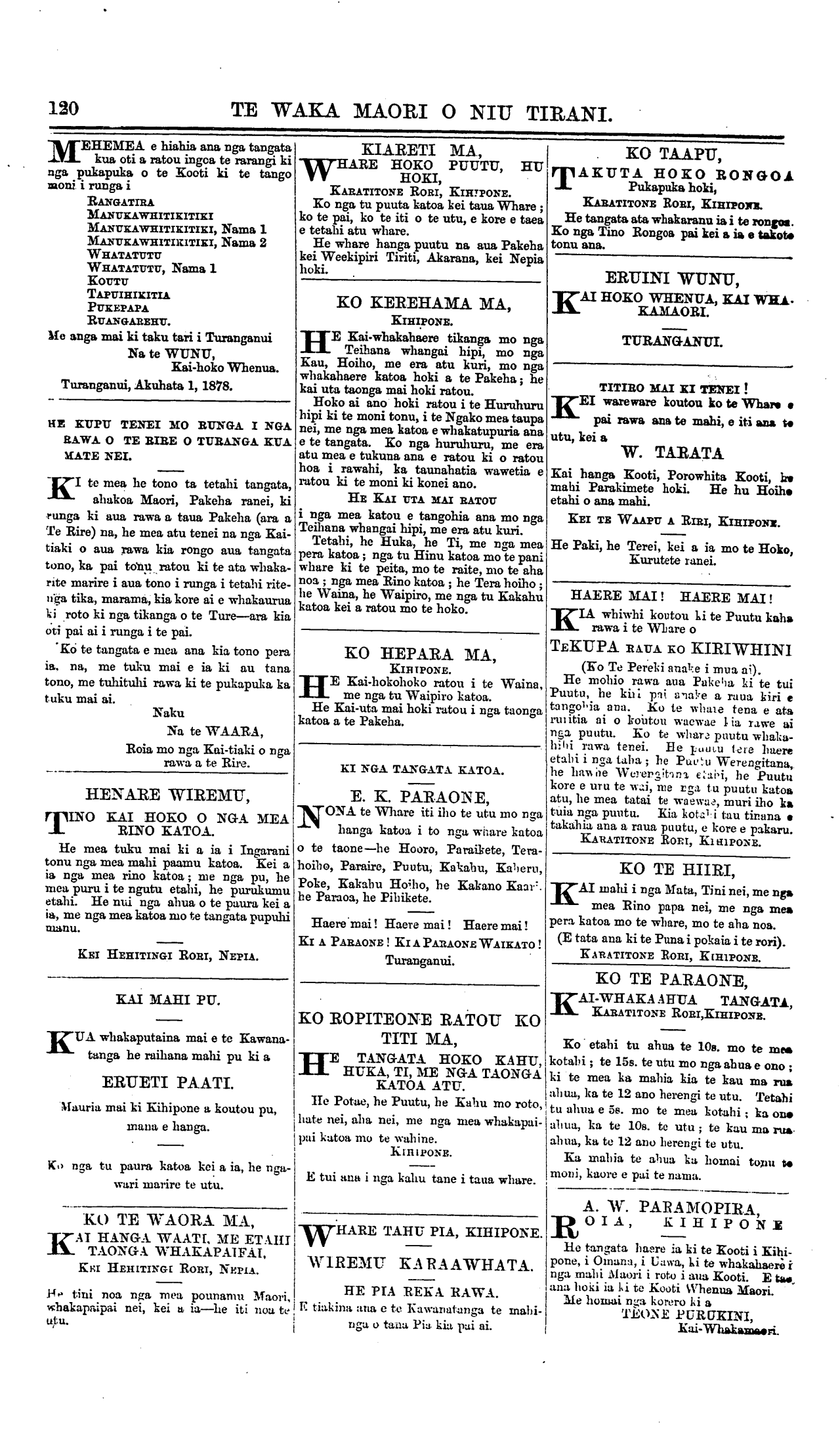Turanganui, Akuhata 1, 1878.