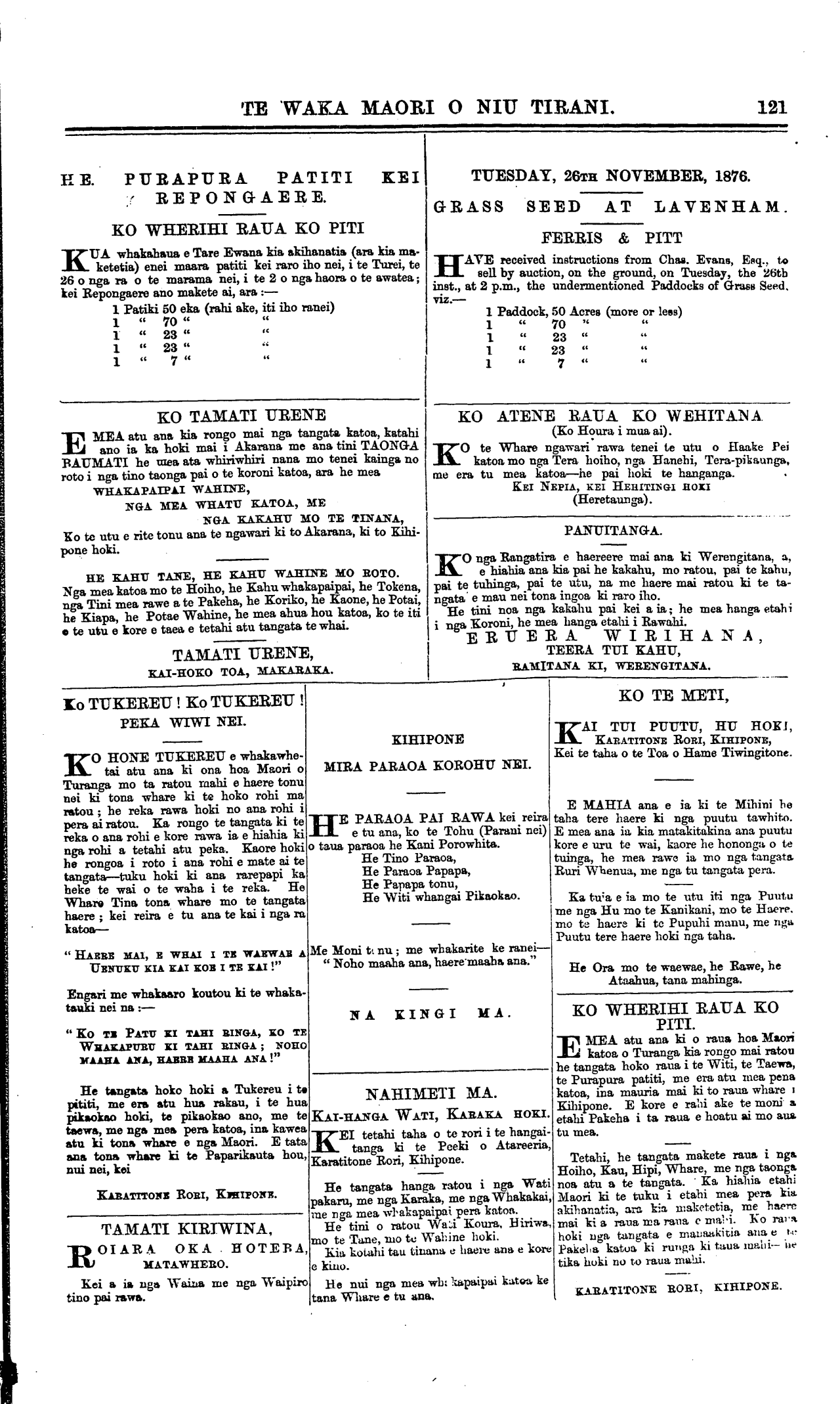 mo nga Maori; a ko te utu e rite tonu ana ki to Kihipone.