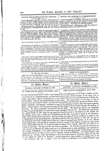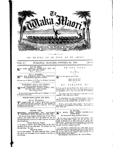 Te Waka Maori o Niu Tirani 1878-1879: Volume 1, Number 9. 23 November 1878 |