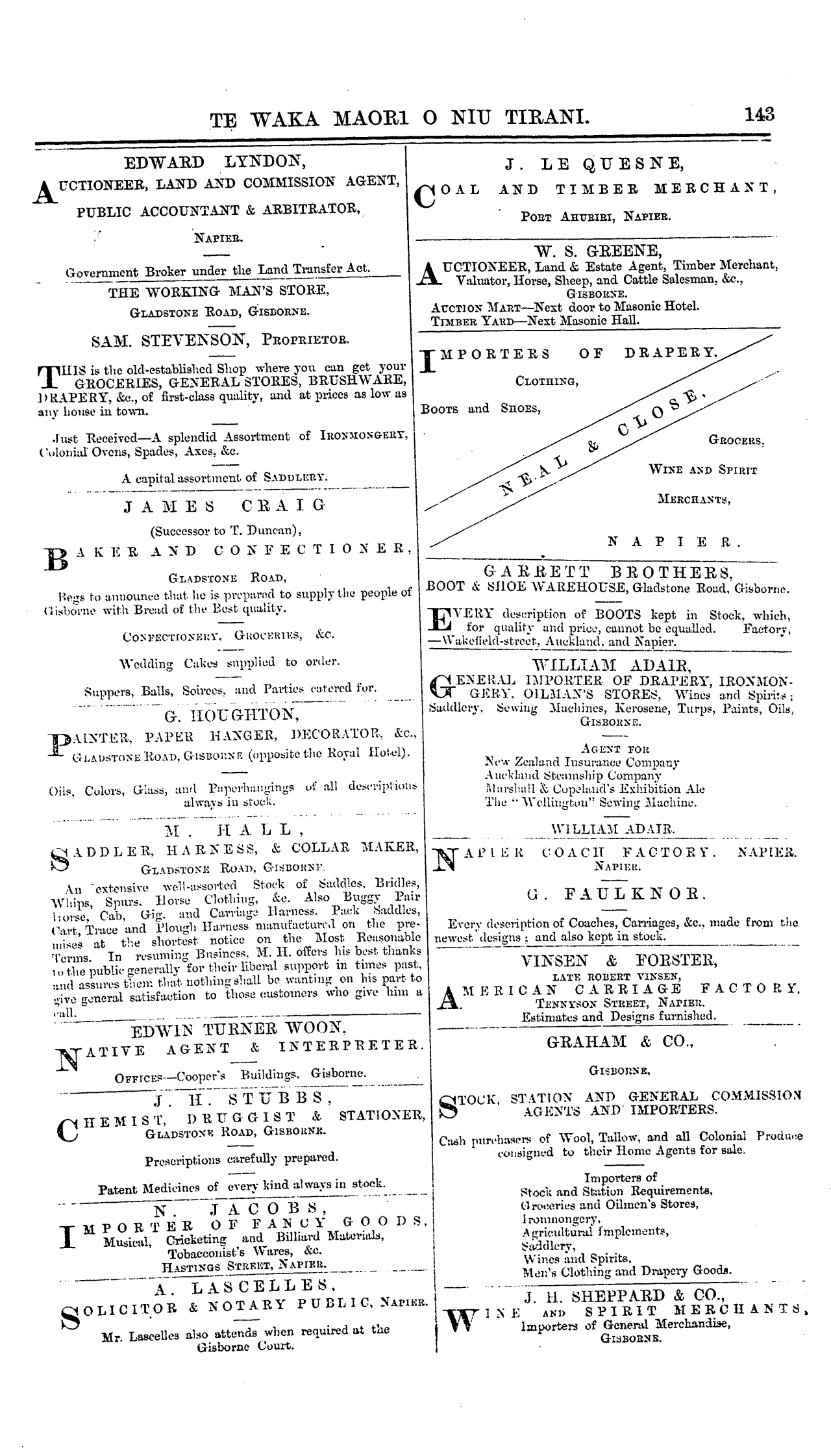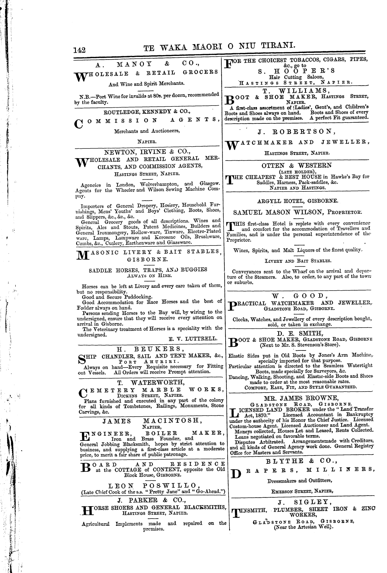 GARRY, J., Hastings Street, Napier.
