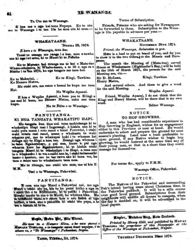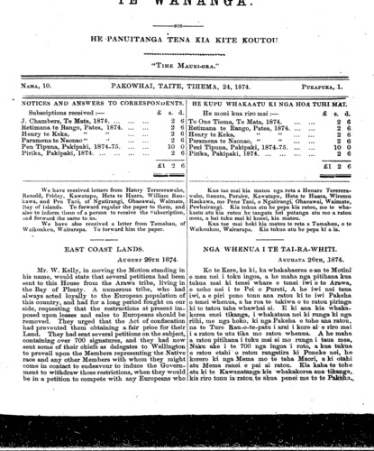 Te Wananga 1874-1878: Volume 1, Number 10. 10 December 1874 |