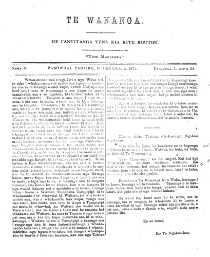 Te Wananga 1874-1878: Volume 1, Number 3. 04 September 1874 |