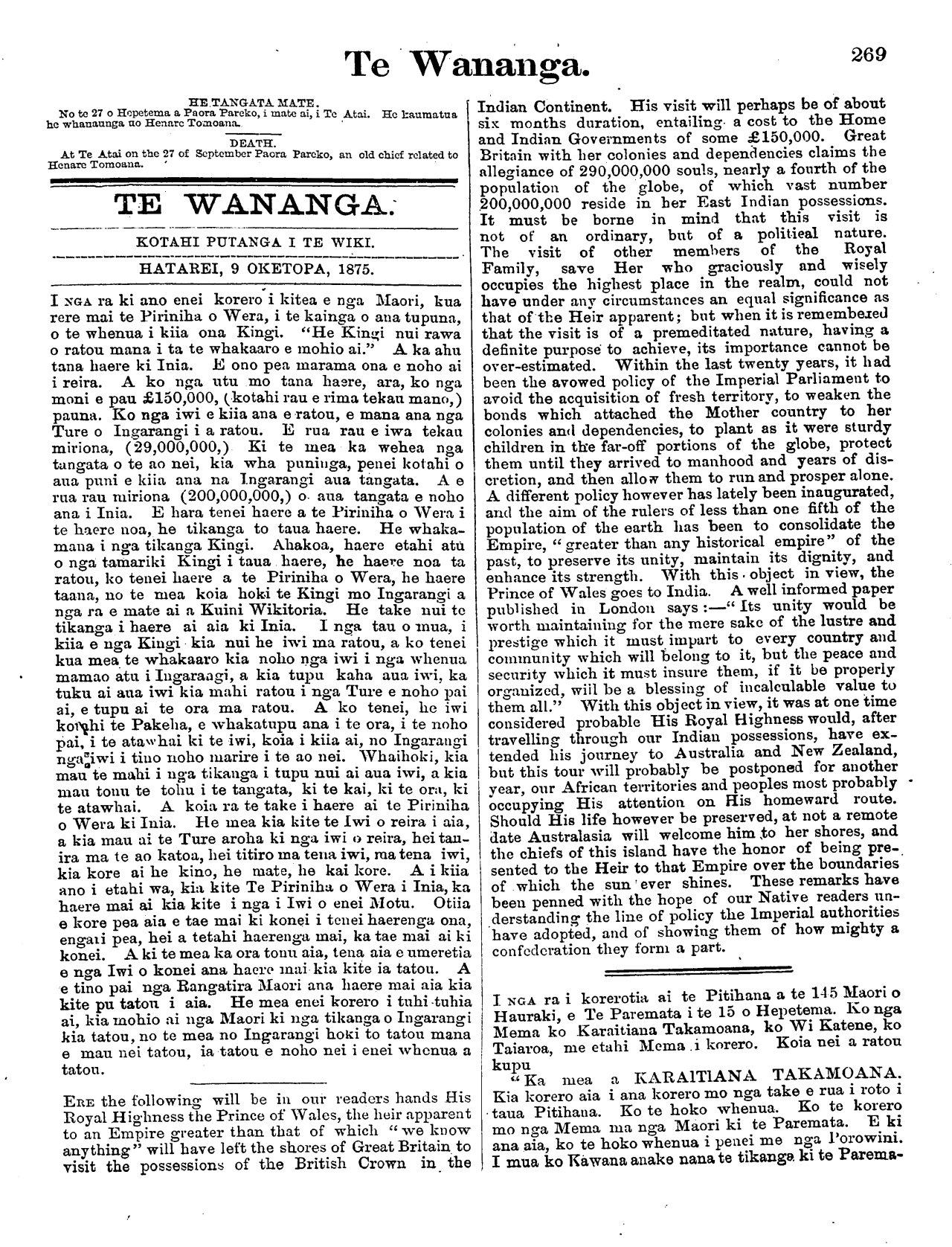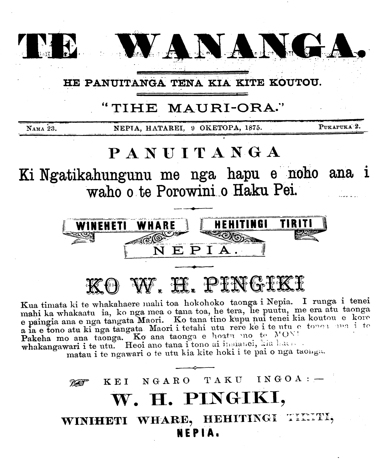 NAMA 23. NEPIA, HATAREI, 9 OKETOPA, I875. PUKAPUKA 2.