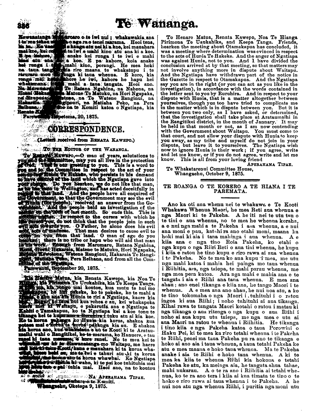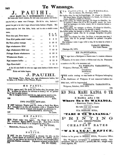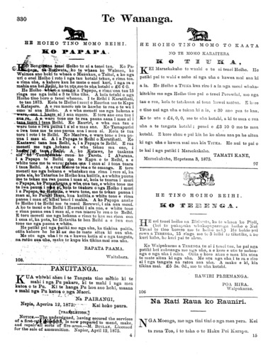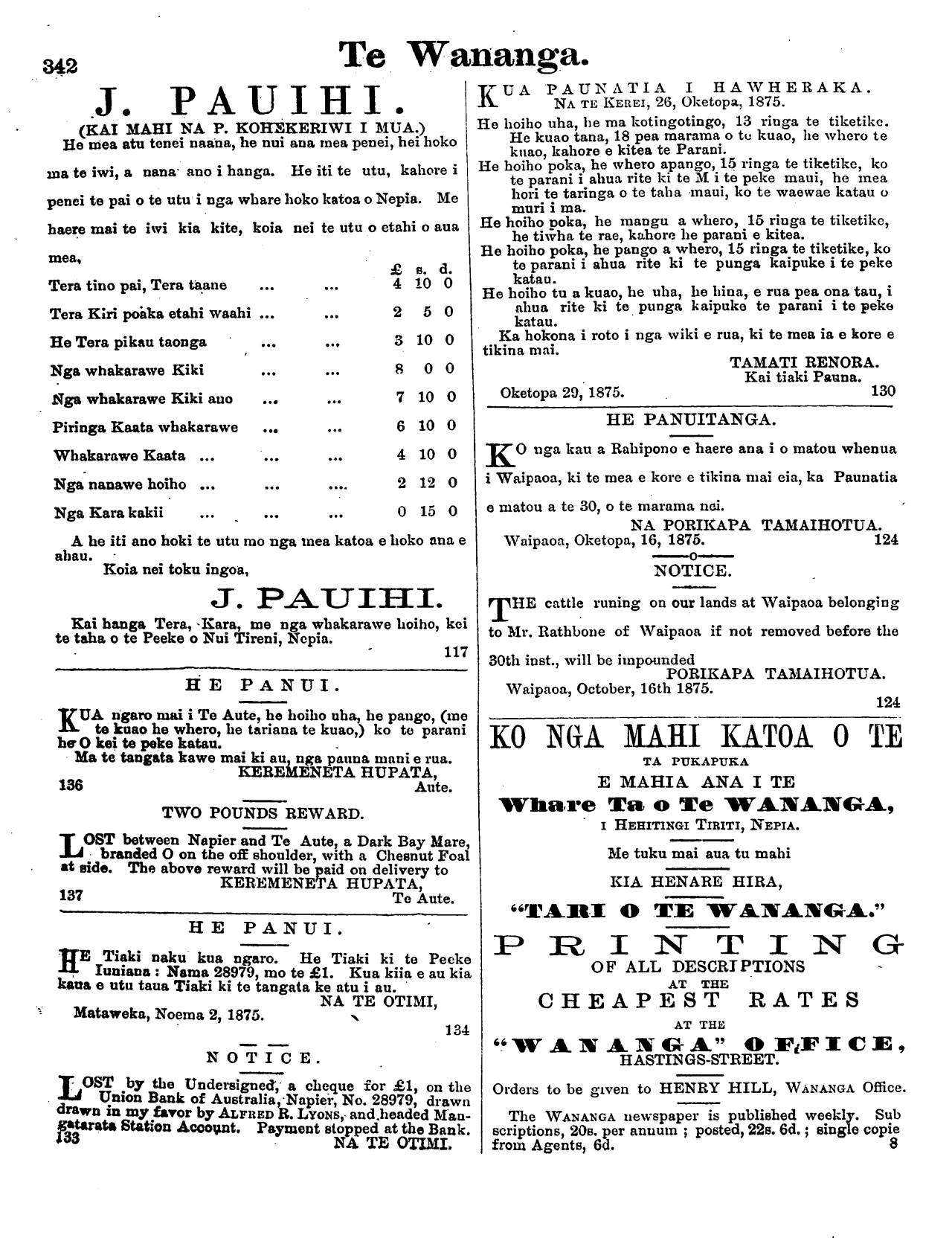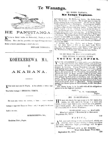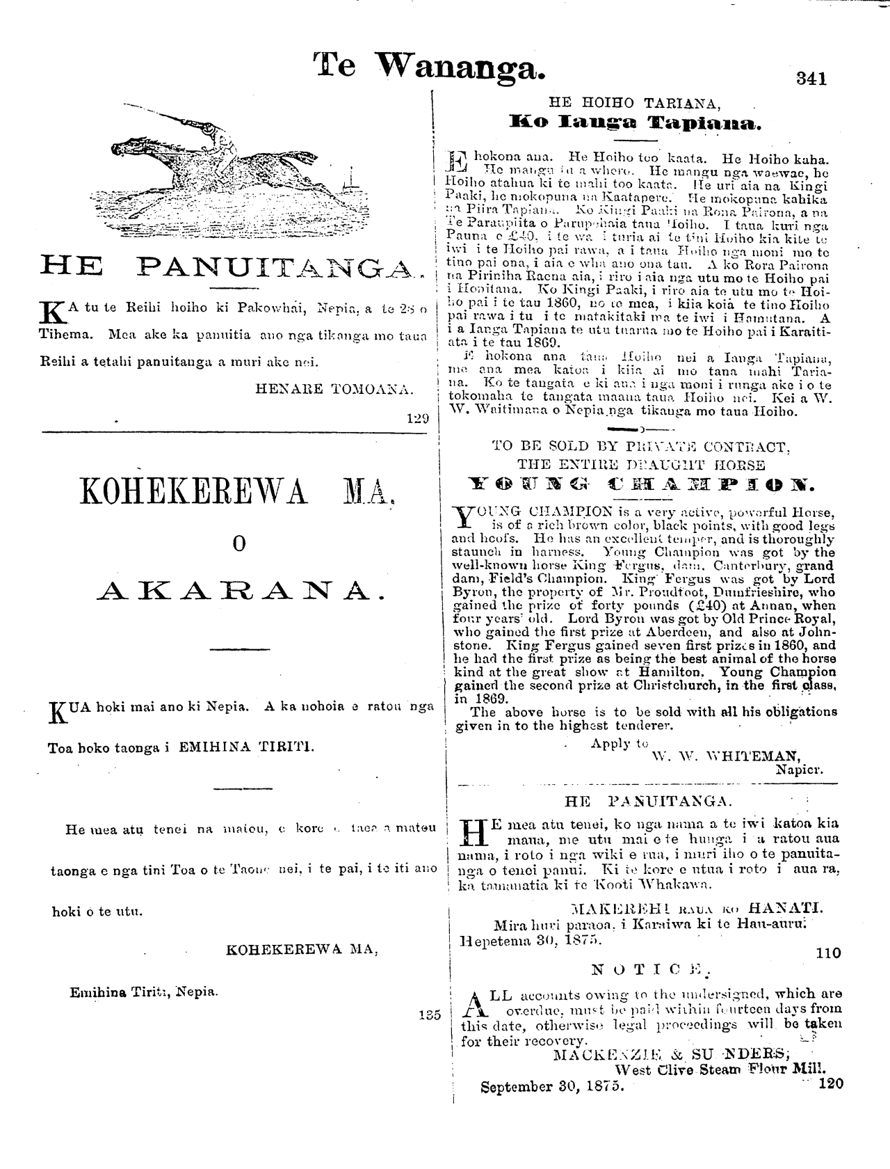 Nepia, Aperira 12, 1875. Kaihoko paura.