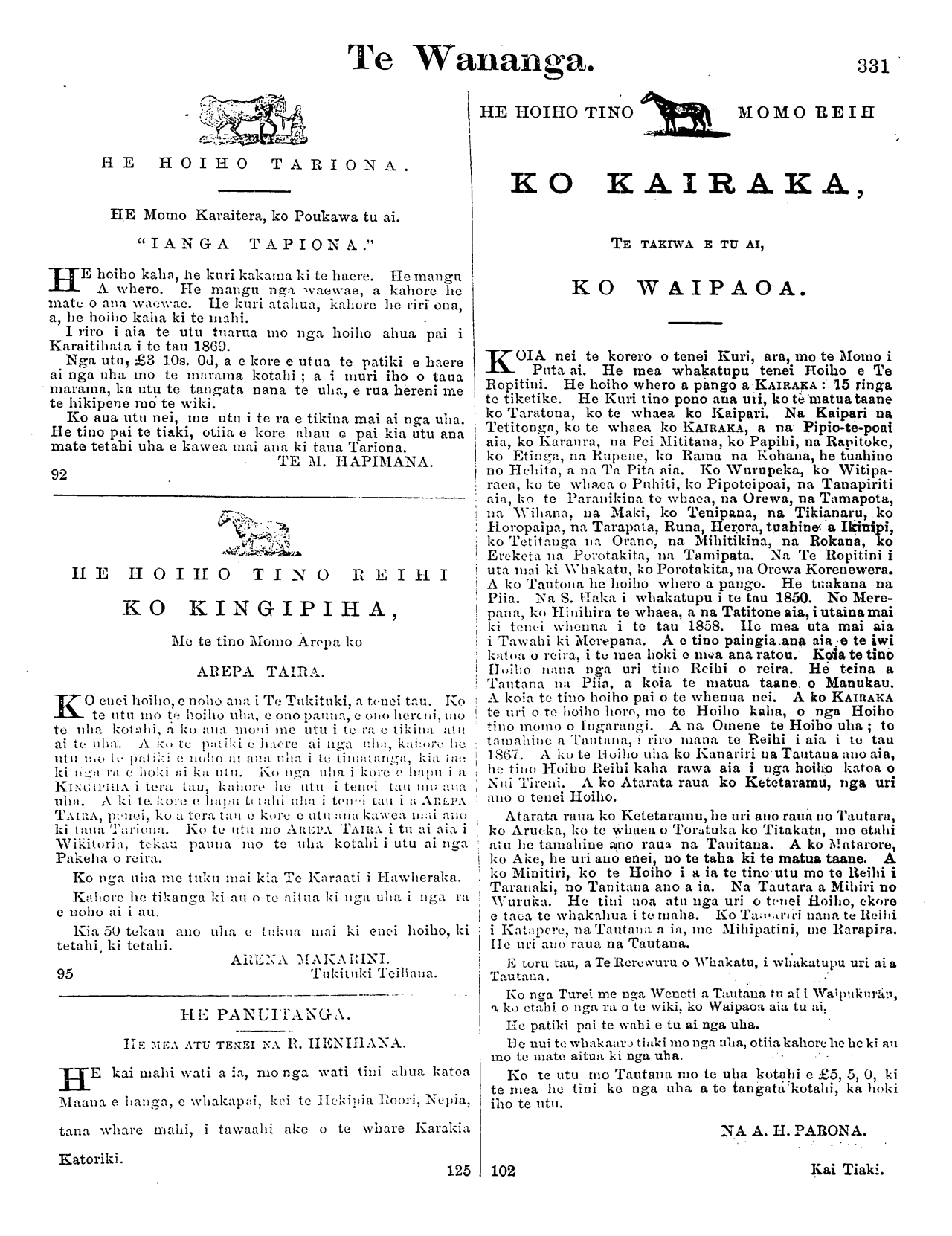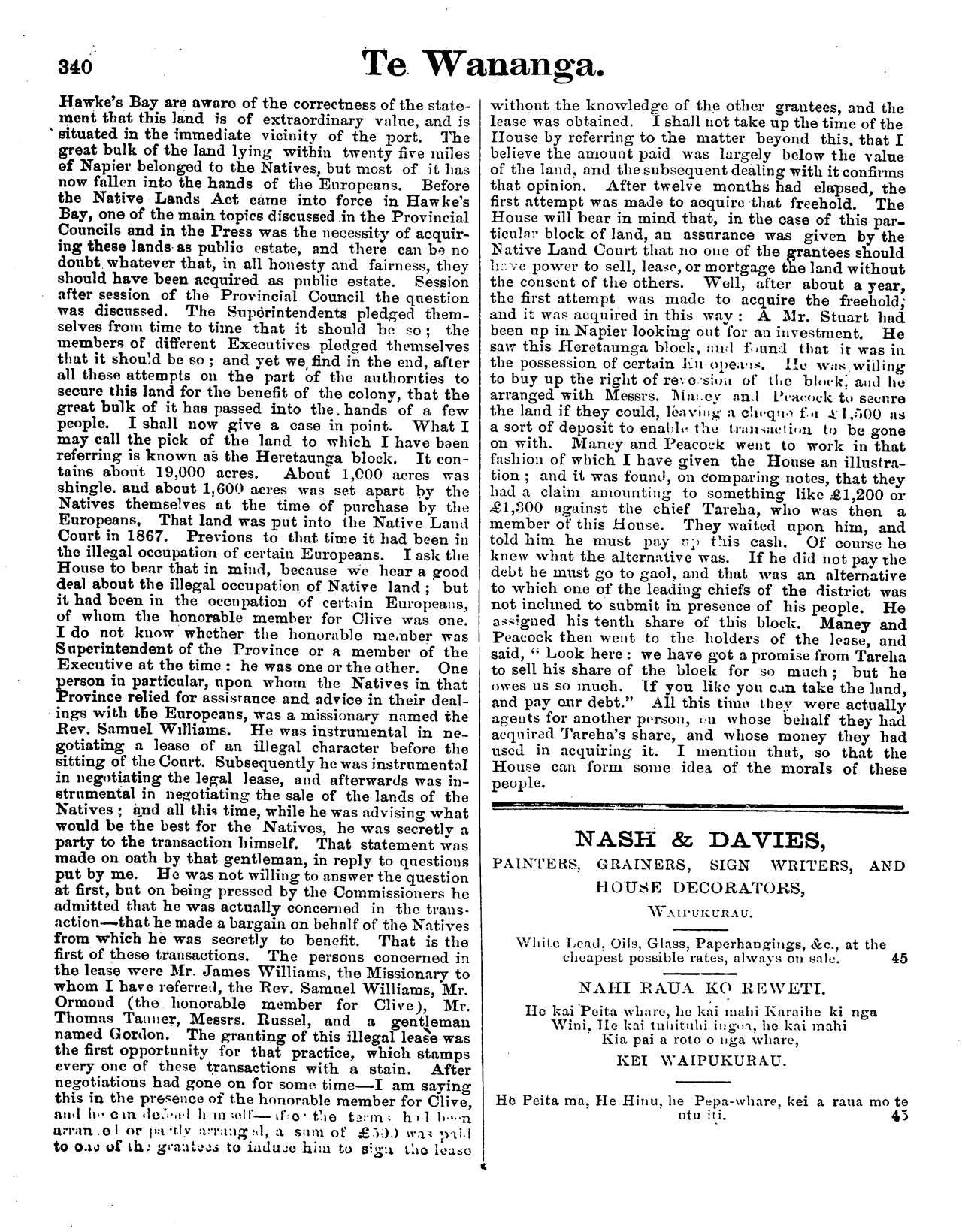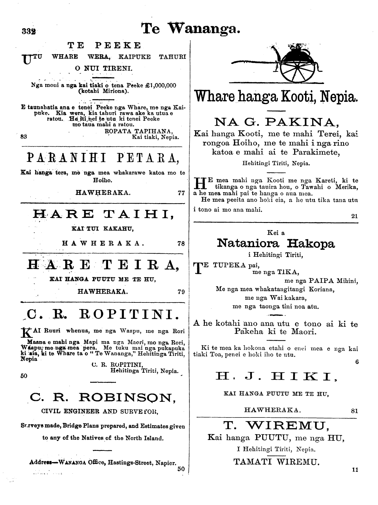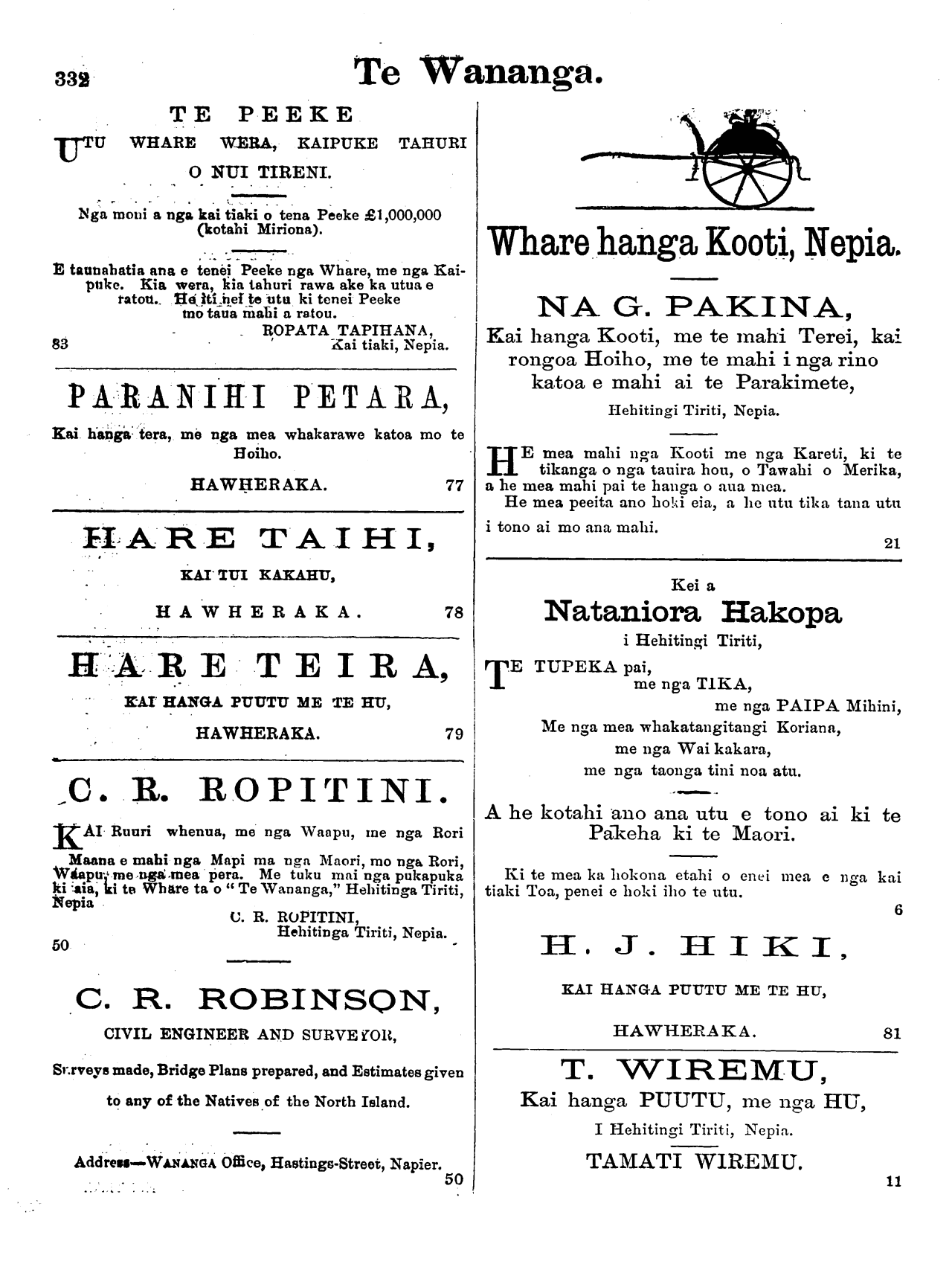 Nepia, Aperira 12, 1875. Kaihoko paura.