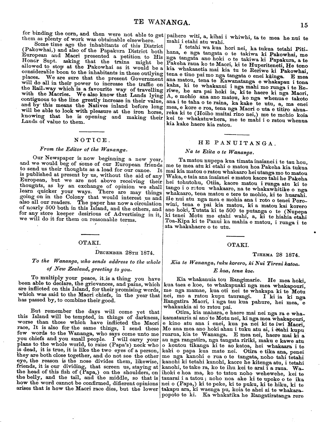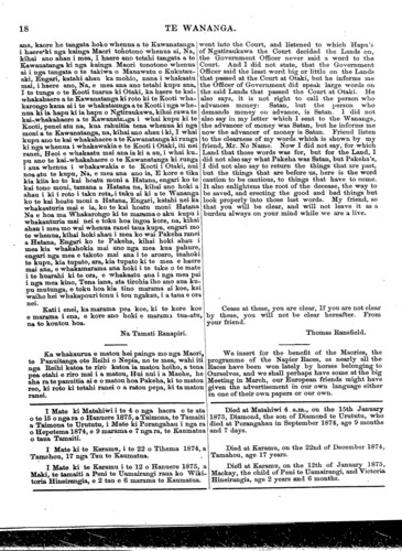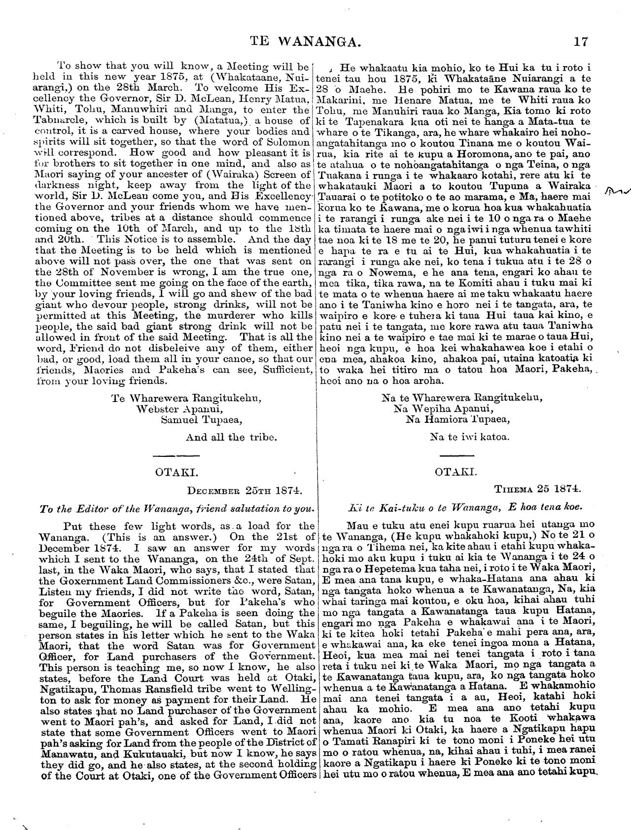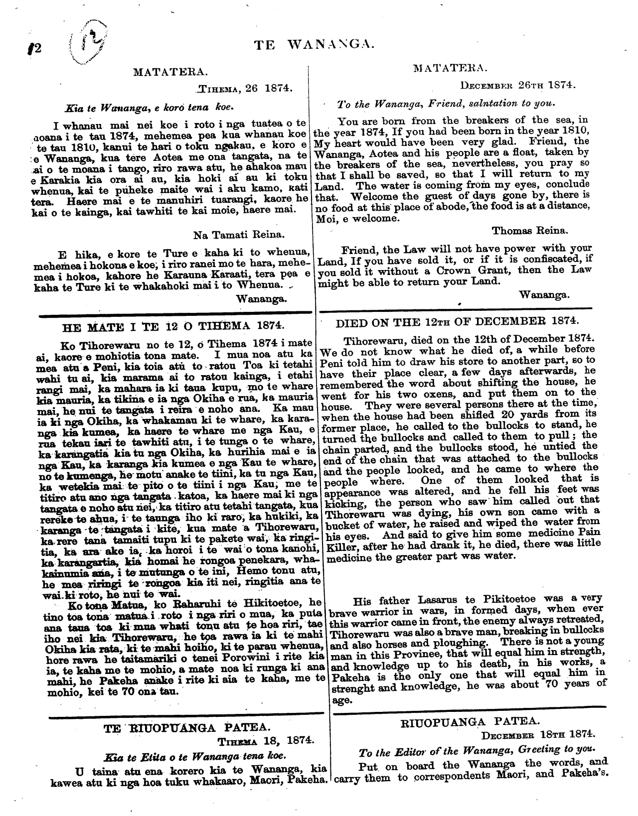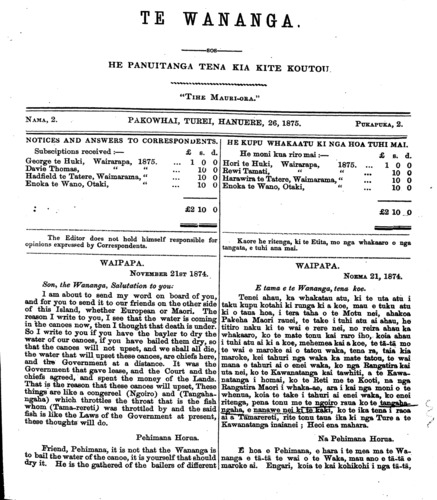 Te Wananga 1874-1878: Volume 2, Number 2. 26 January 1875 |