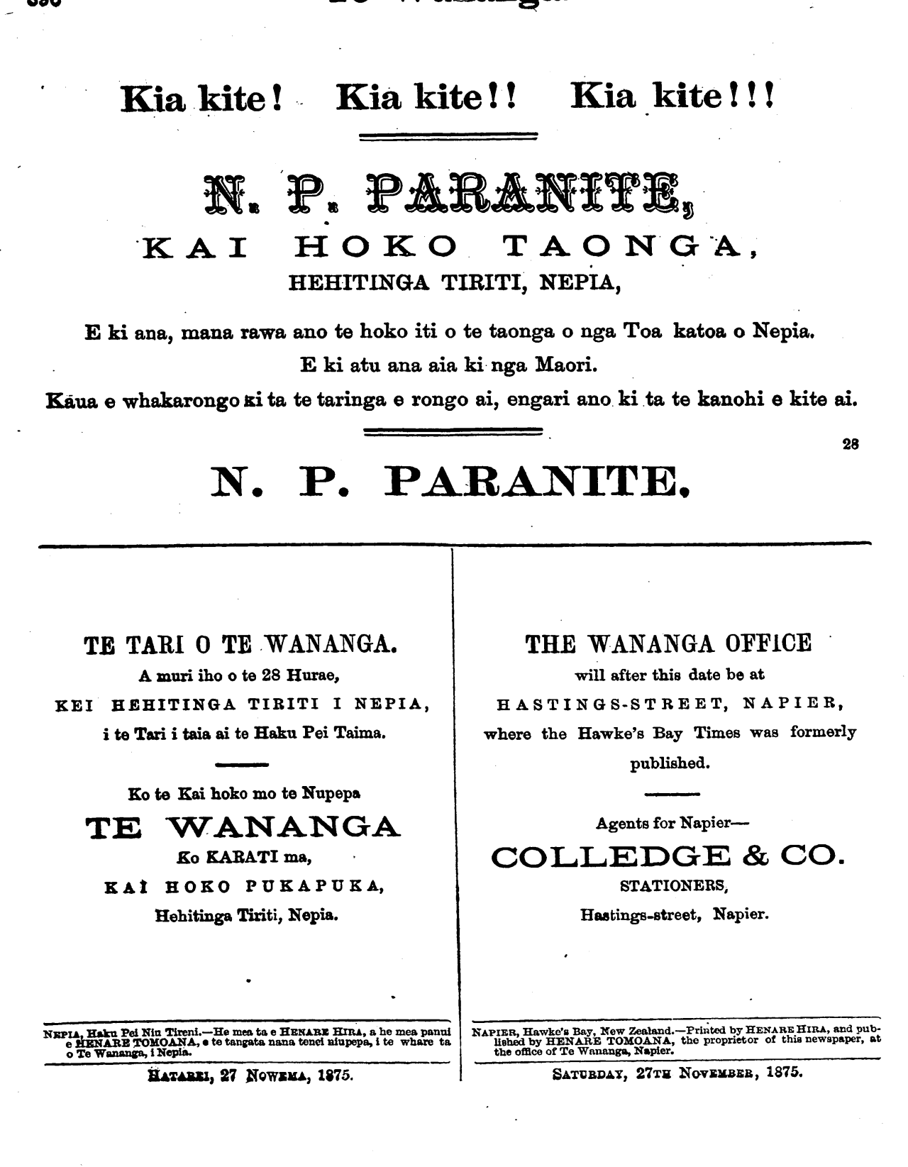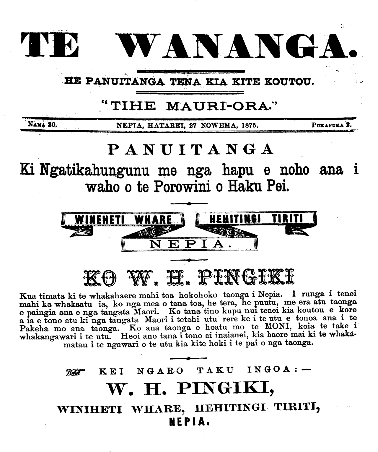 NAMA SO. NEPIA, HATAREI, 27 NOWEMA, 1875. PUKAPUKA 2.