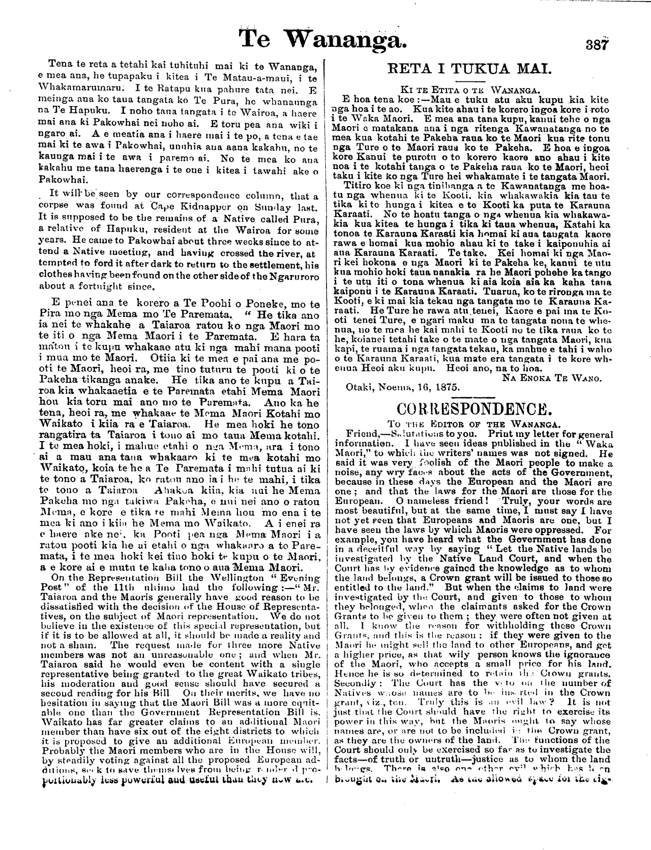 Te Wananga 1874-1878: Volume 2, Number 30. 27 November 1875 |