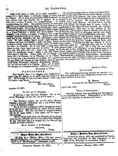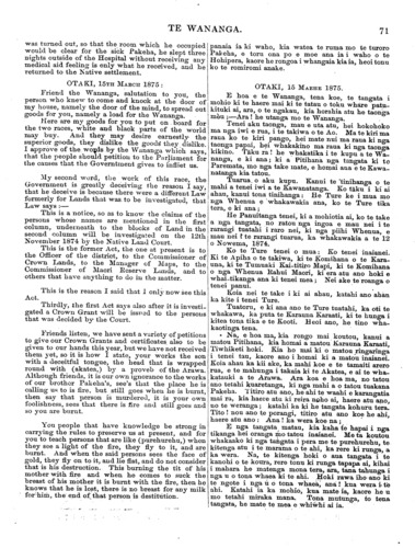 Te Wananga 1874-1878: Volume 2, Number 7. 12 April 1875 |