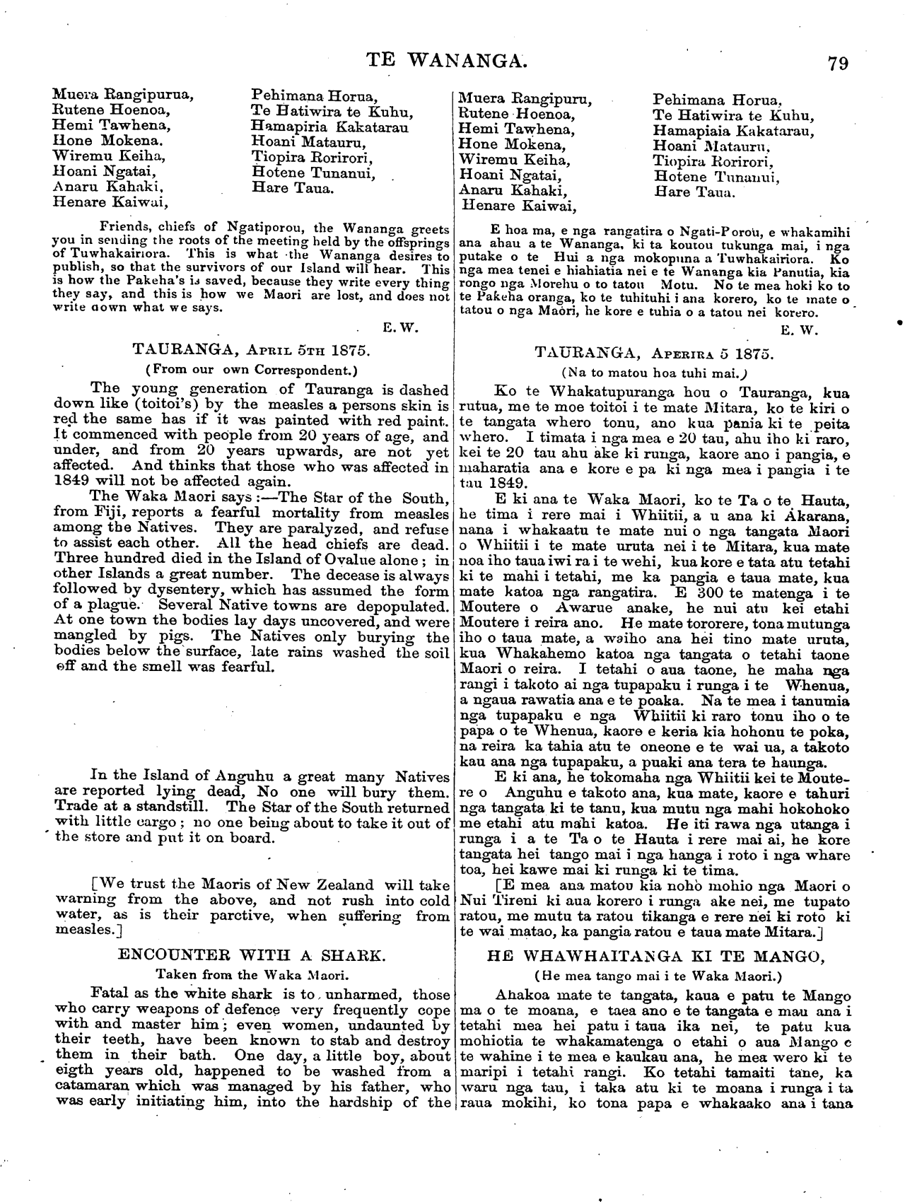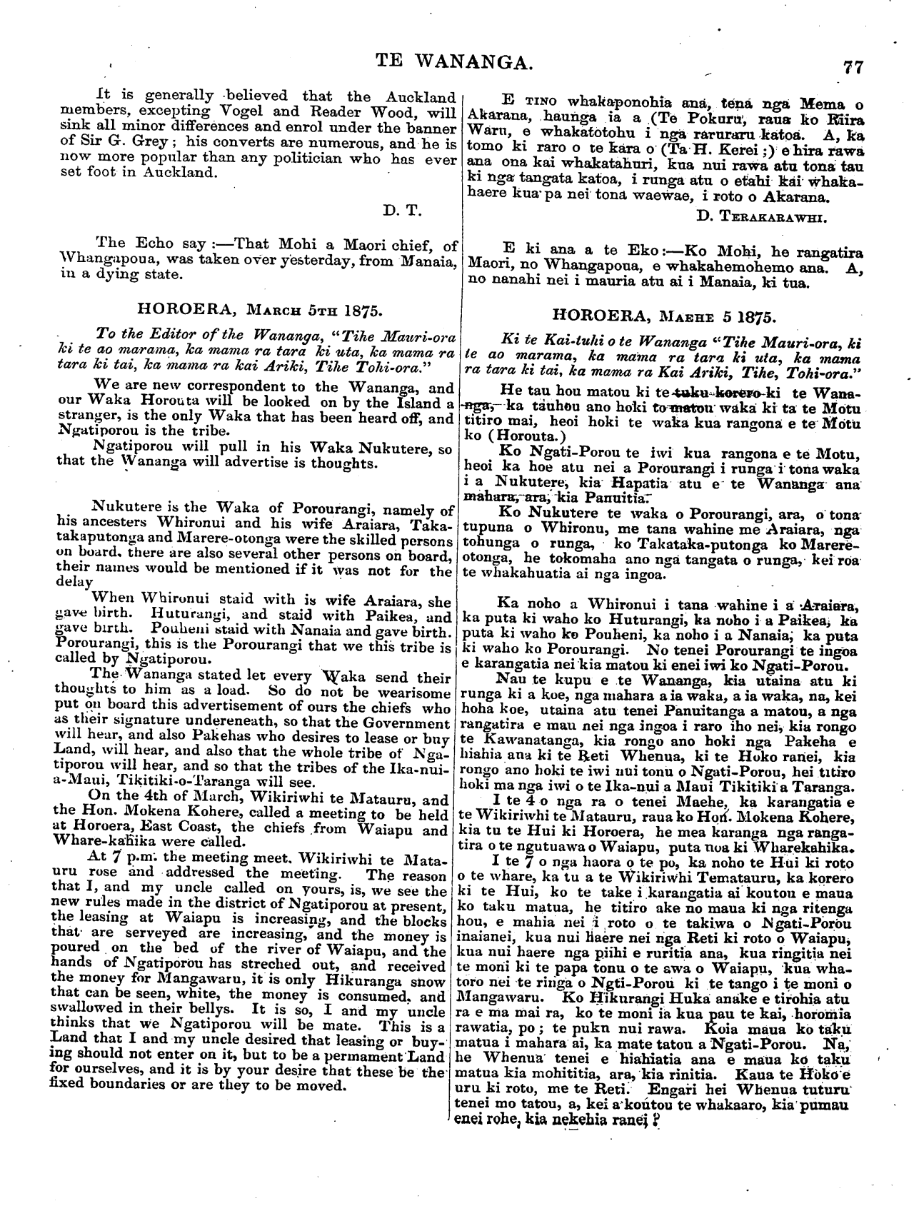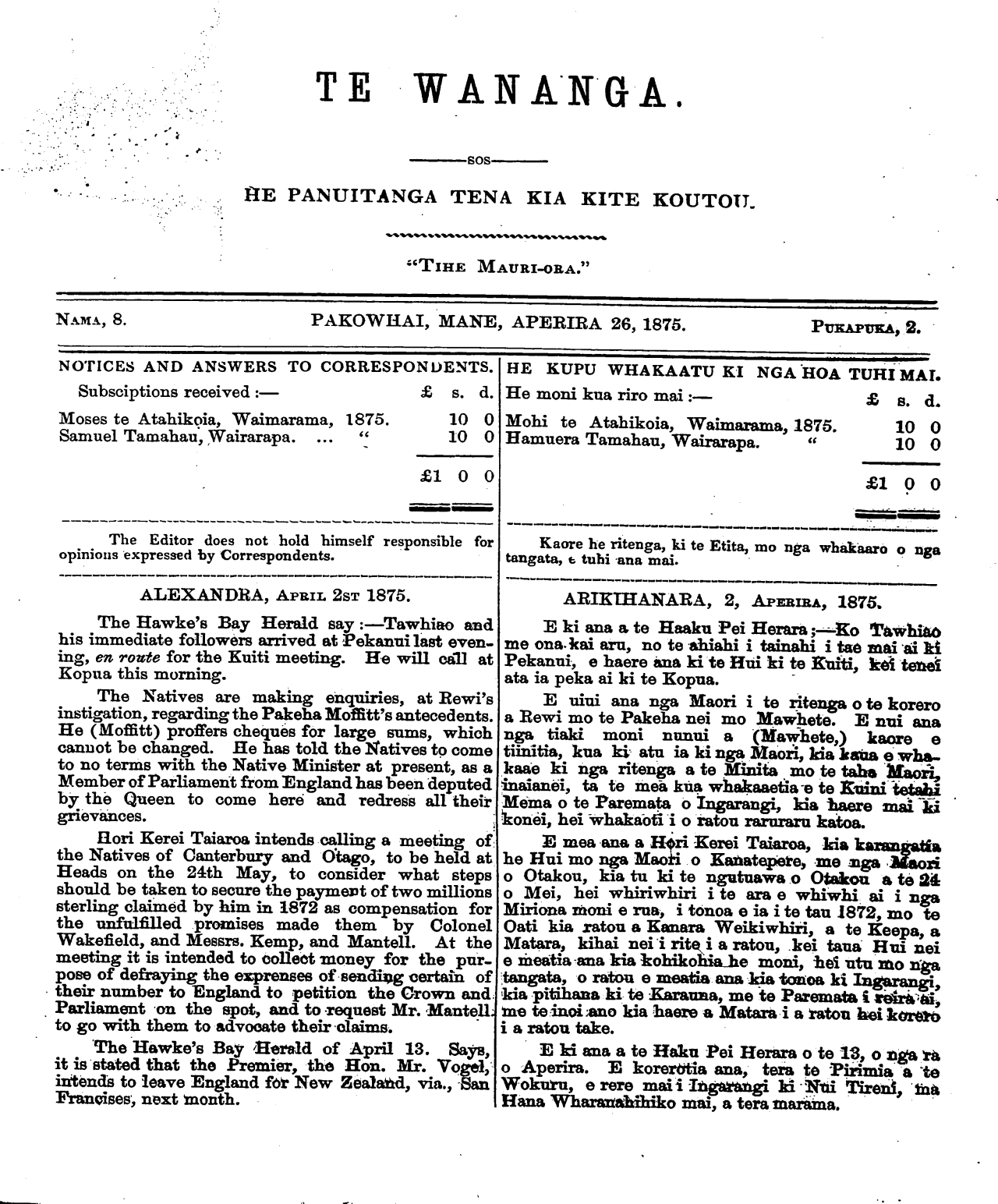 Te Wananga 1874-1878: Volume 2, Number 8. 26 April 1875 |