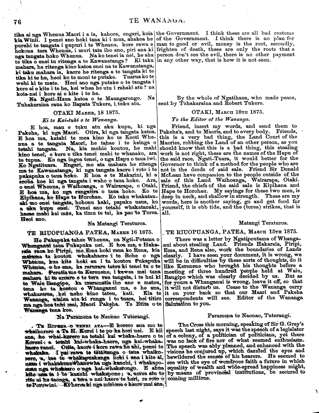 a Rewi mo te Pakeha nei nao Mawhete. E nui ana