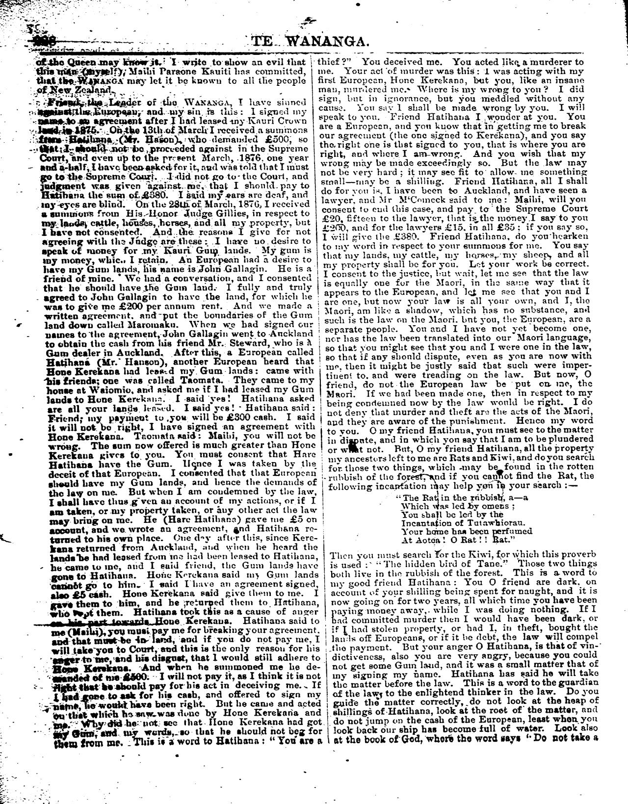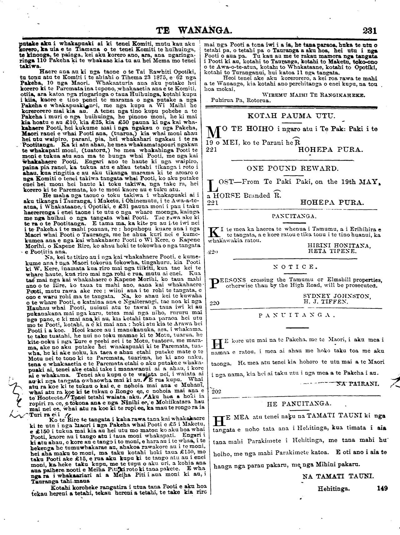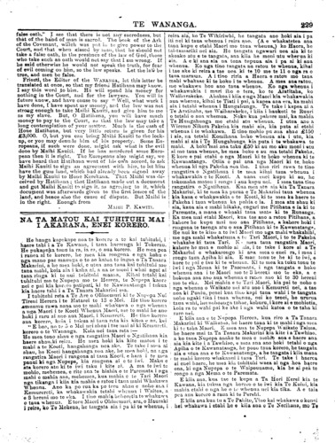taonga. He mea atu tenei kia hohoro te utu mai a te Maori