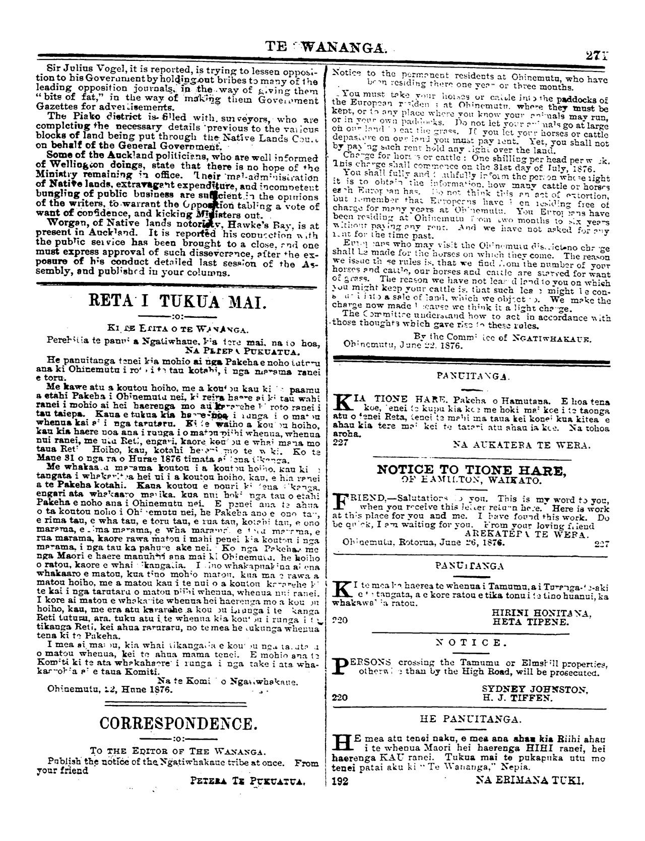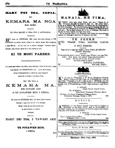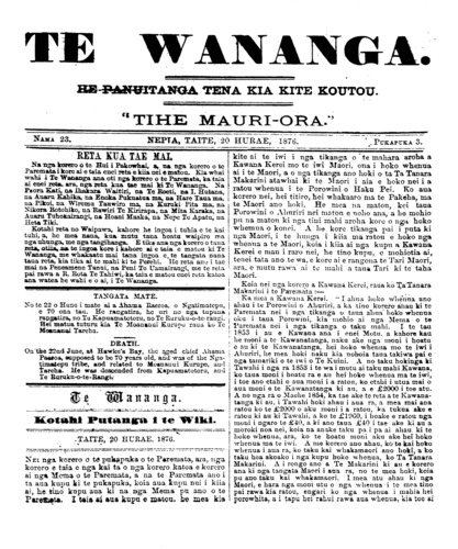 NAMA 23. NEPIA, TAITE, 20 HURAE, 1876. PUKAPUKA 3.
