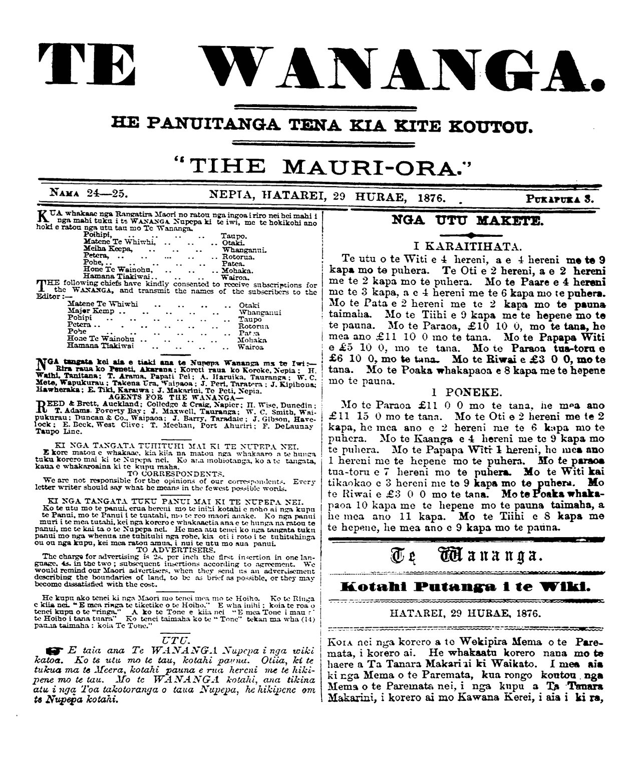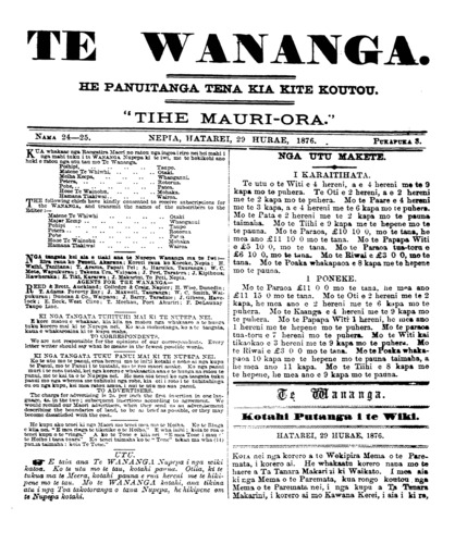 NAMA 24—25. NEPIA, HATAREI, 29 HURAE. 1876. PUKAPUKA 3.