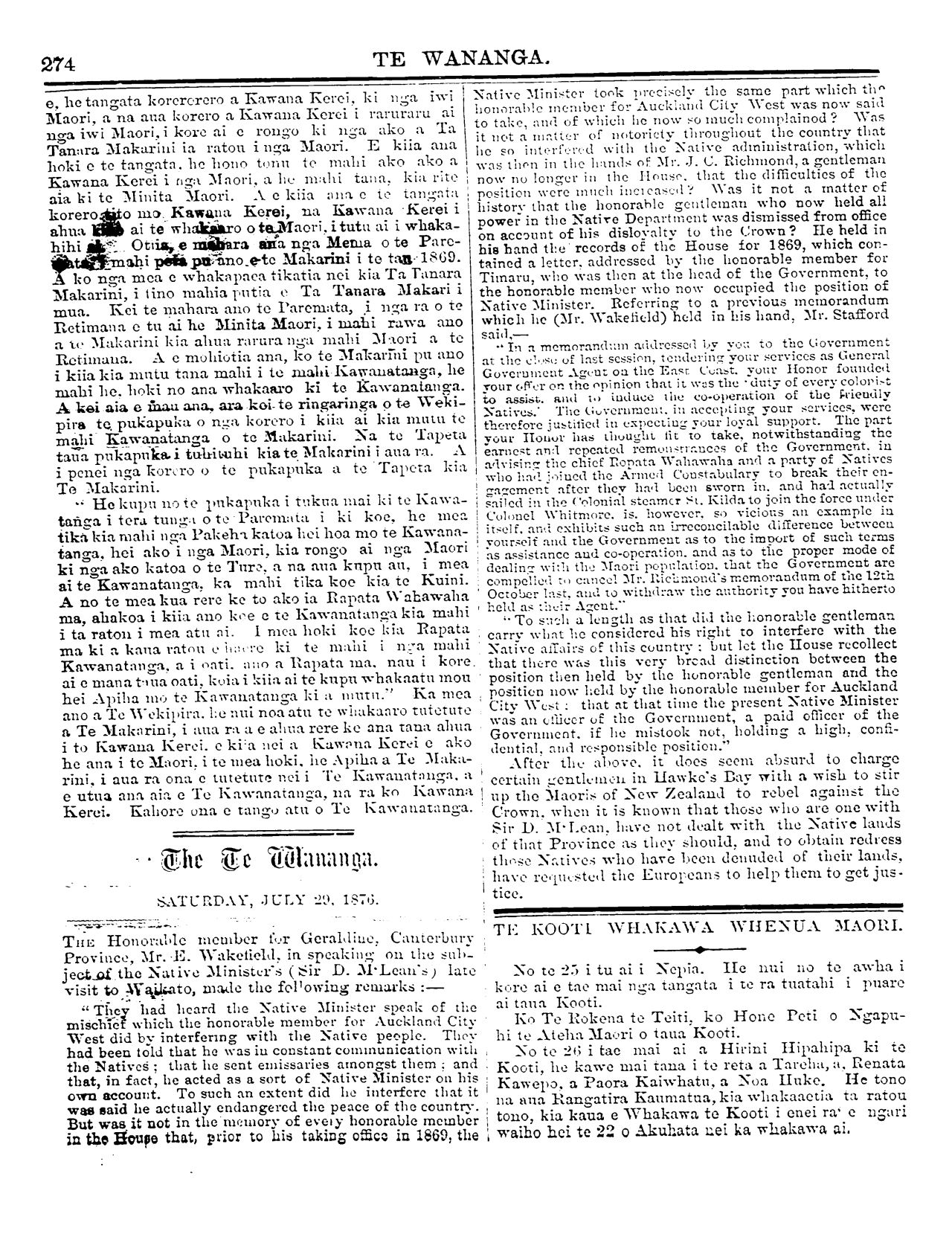 Te Wananga 1874-1878: Volume 3, Number 24. 29 July 1876 |