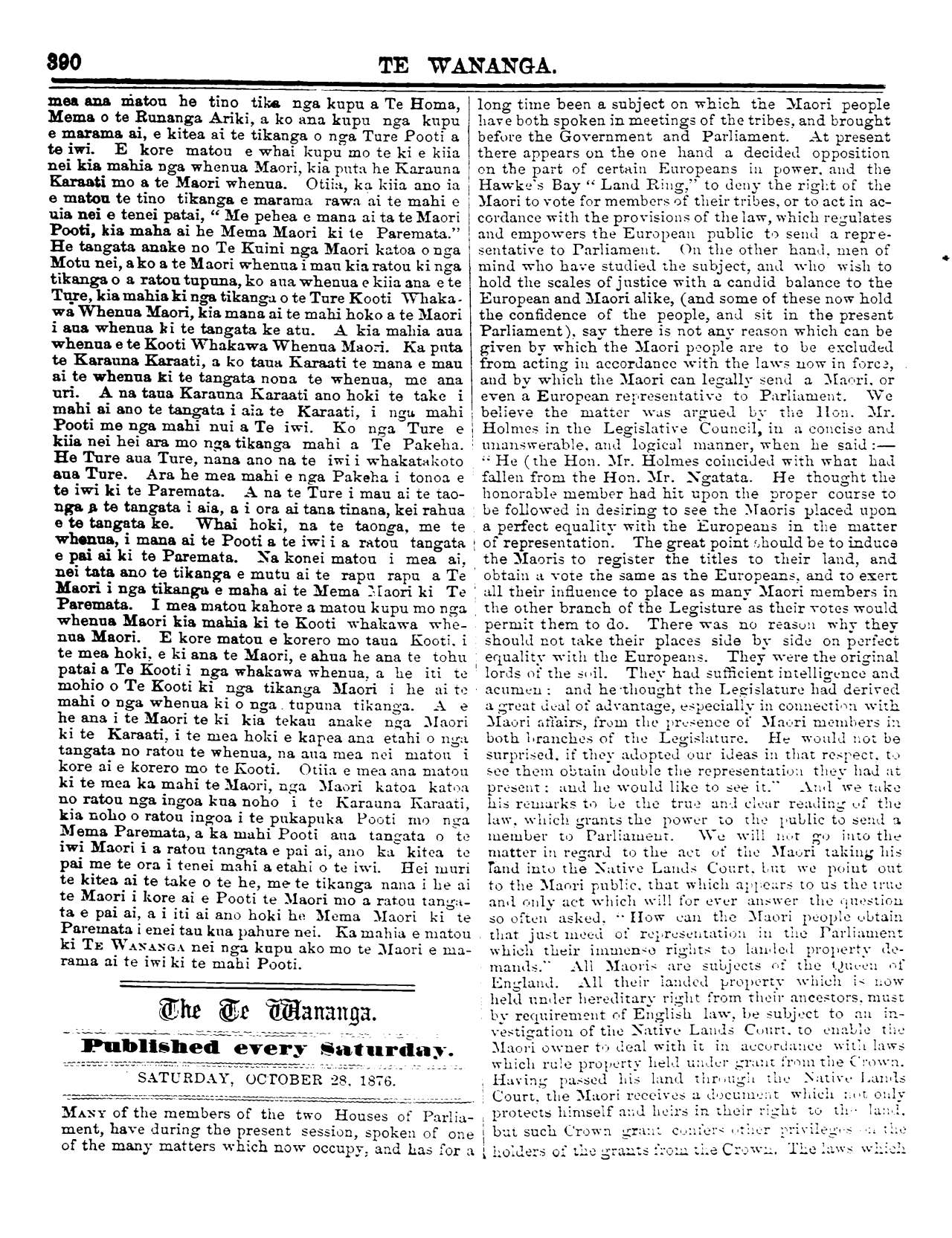 Te Wananga 1874-1878: Volume 3, Number 38. 28 October 1876 |