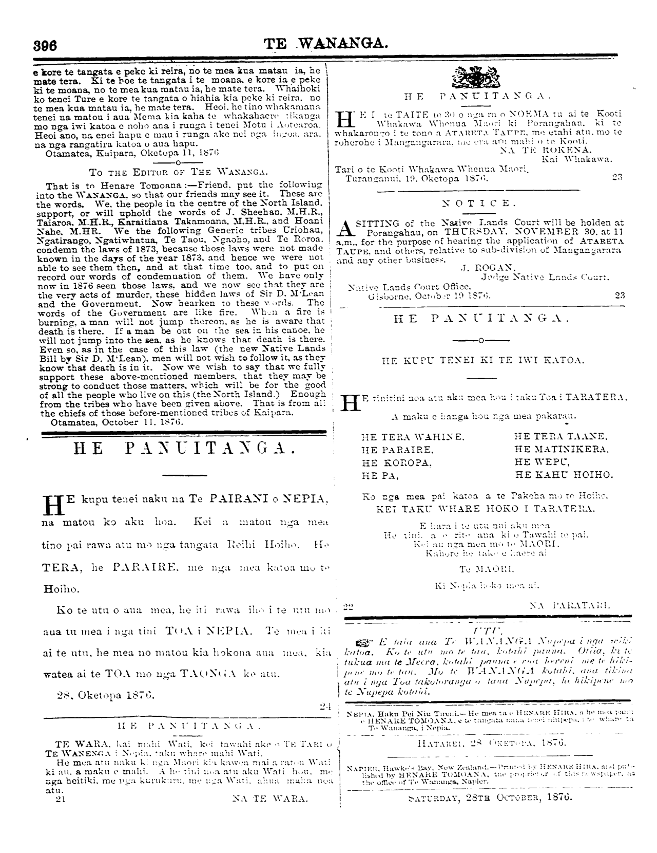 NAMA 38. NEPIA, HATAREI, 28 OKETOPA. 1876. PUKAPUKA 3.