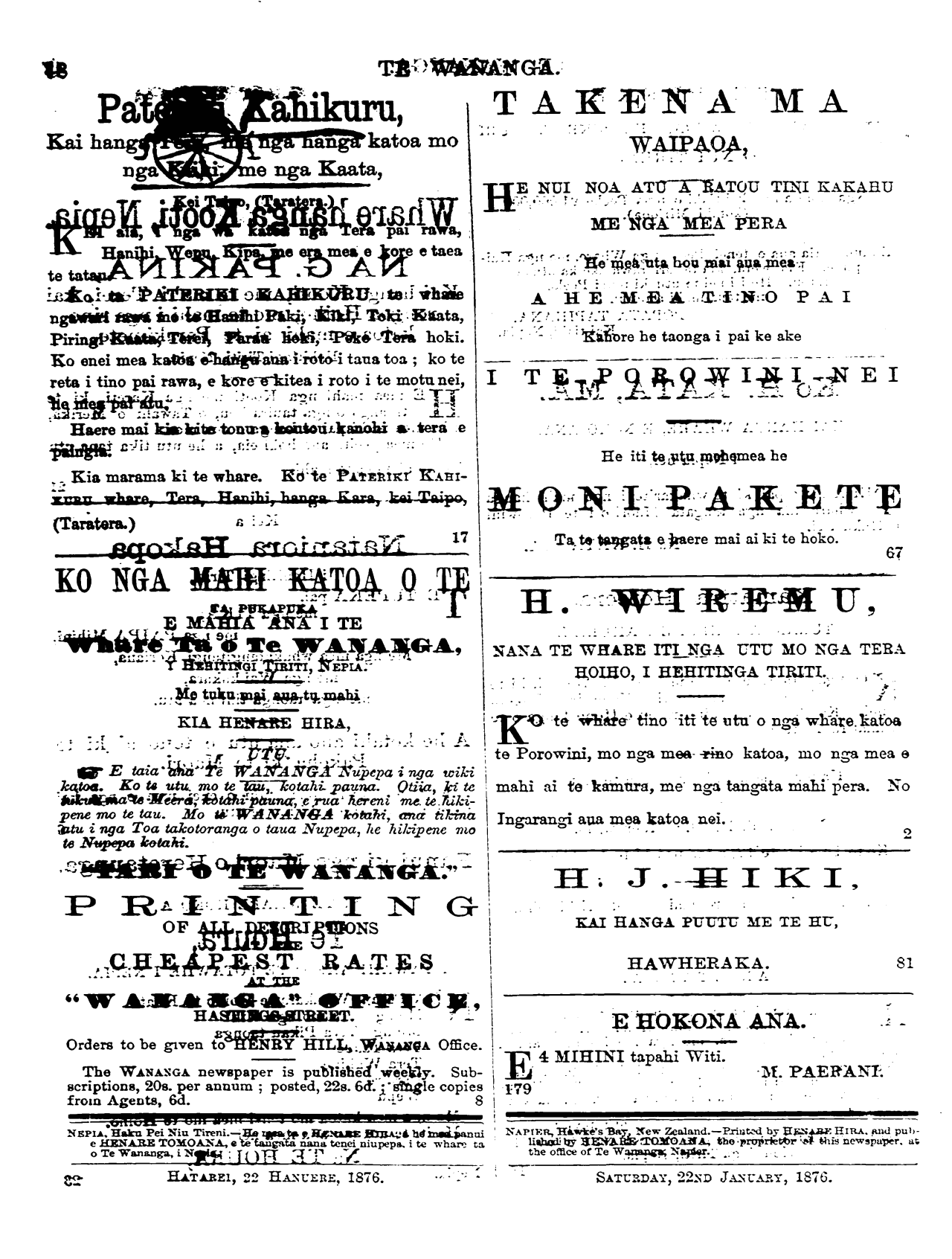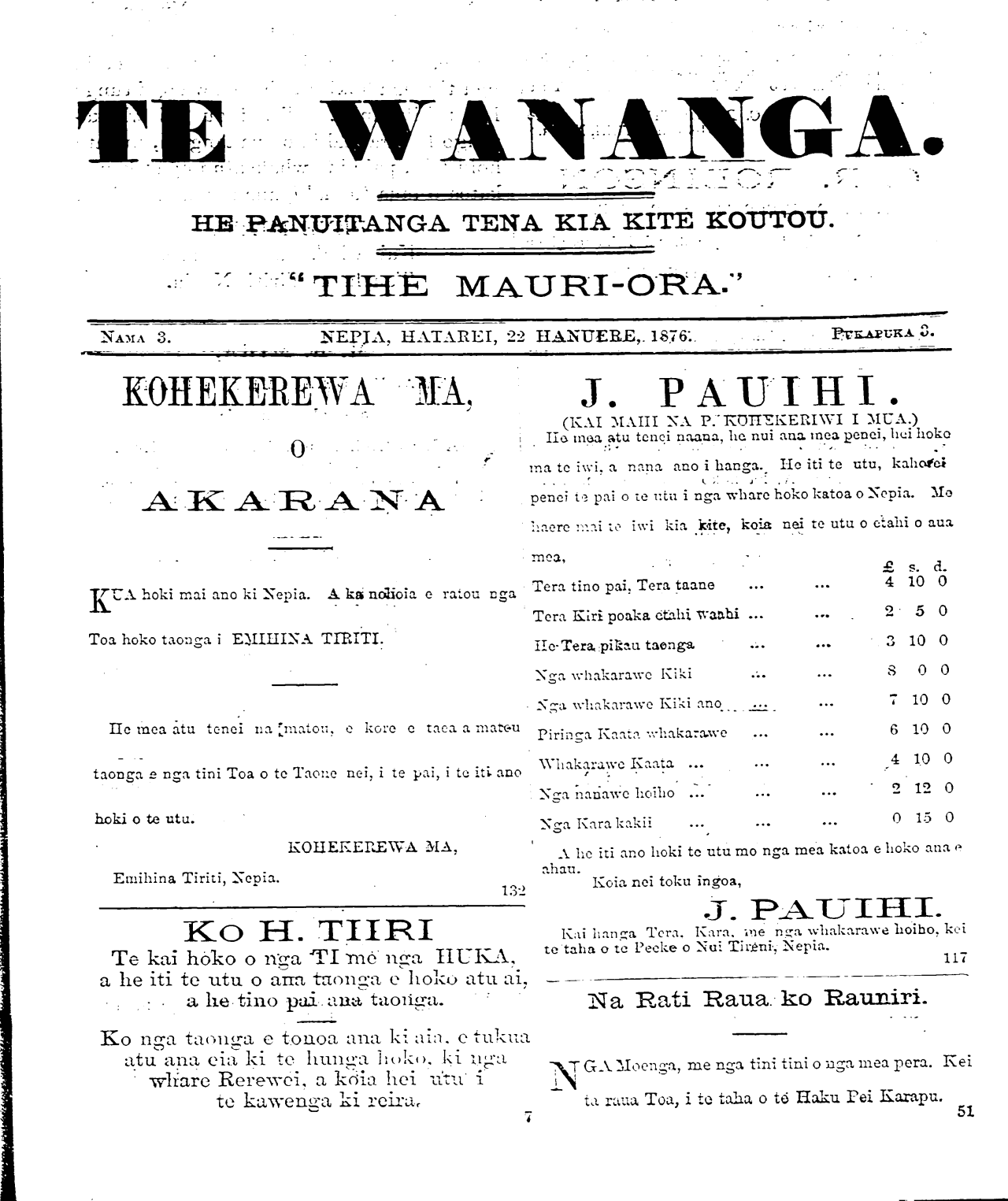 NAMA 3. NEPIA, HATAREI, 22 HANUERE, 1876. PUKAPUKA 3.