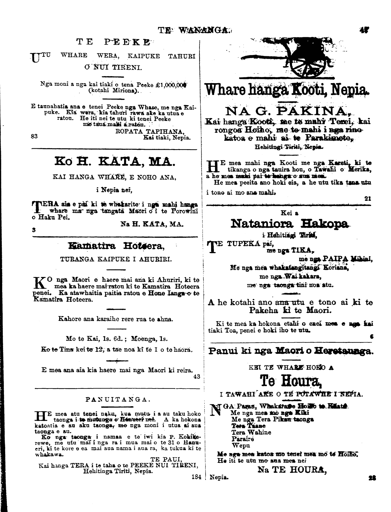 KUA hoki mai ano ki Nepia. A ka nohoia* e ratou nga