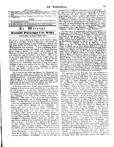 Te Wananga 1874-1878: Volume 3, Number 3. 22 January 1876 |