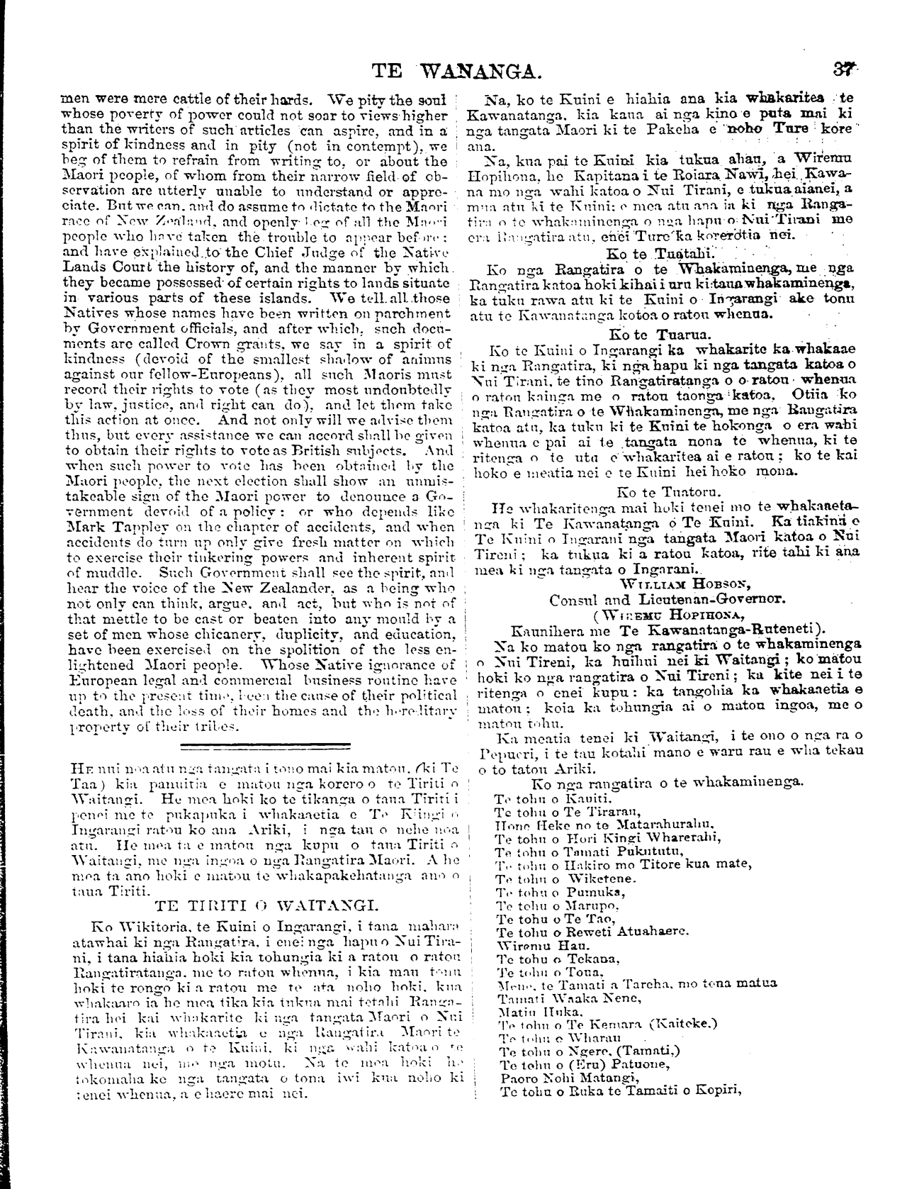 i Hehitinga Tiriti, Nepia.
