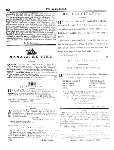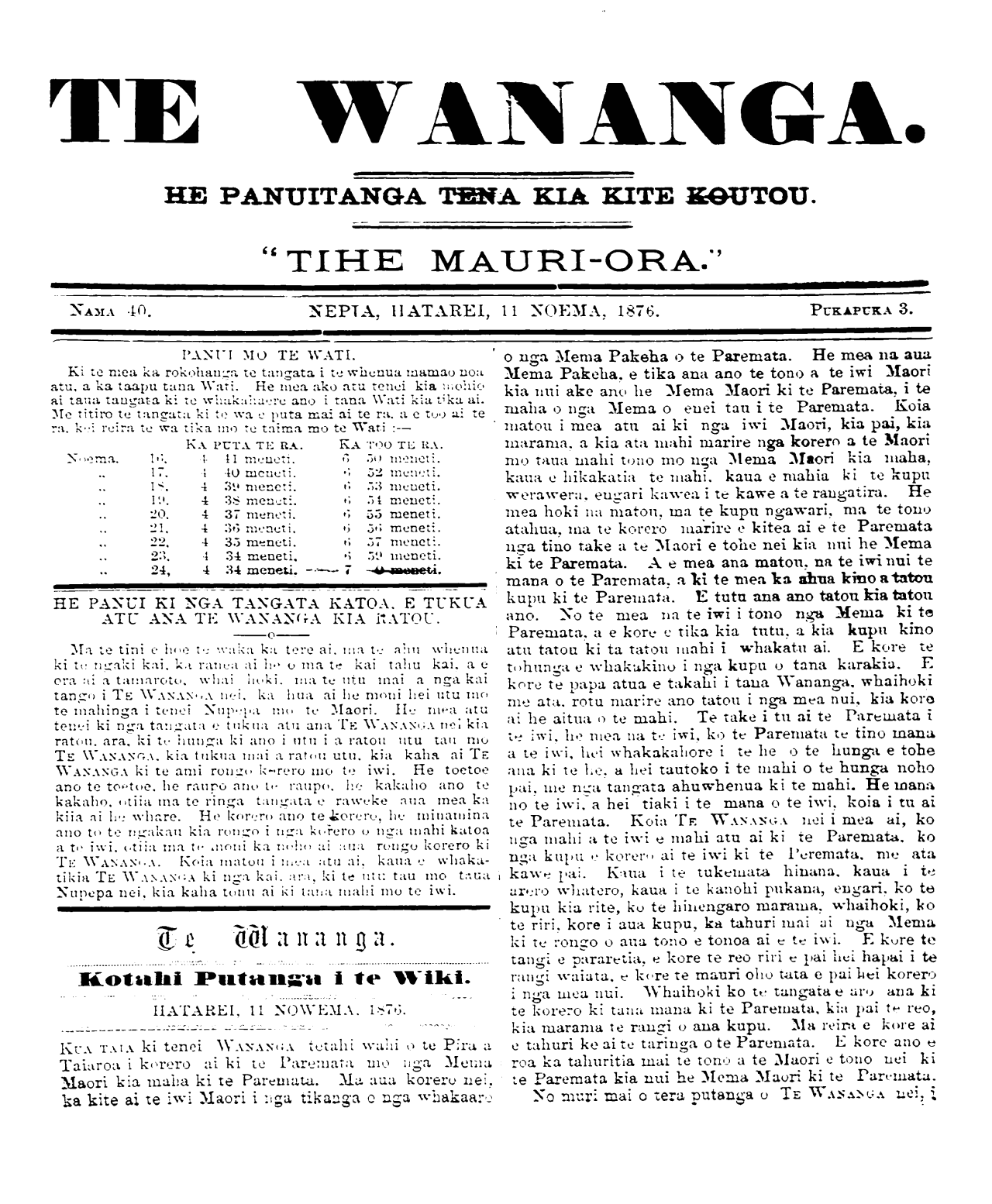 Te Wananga 1874-1878: Volume 3, Number 40. 11 November 1876