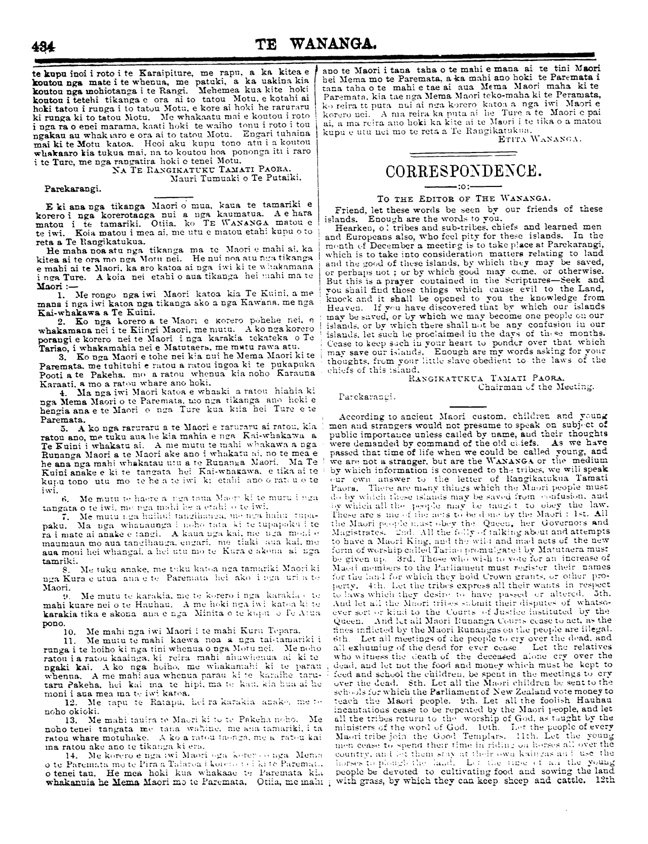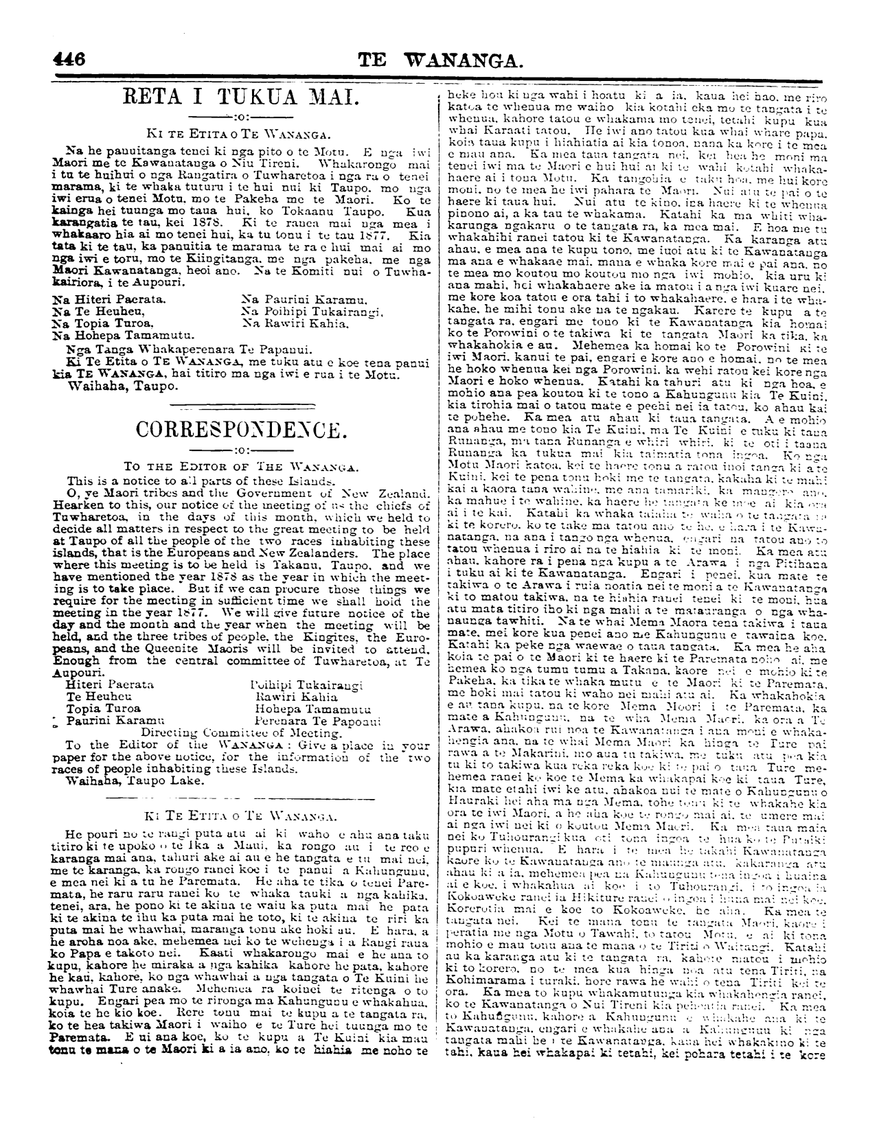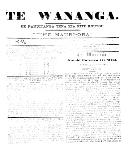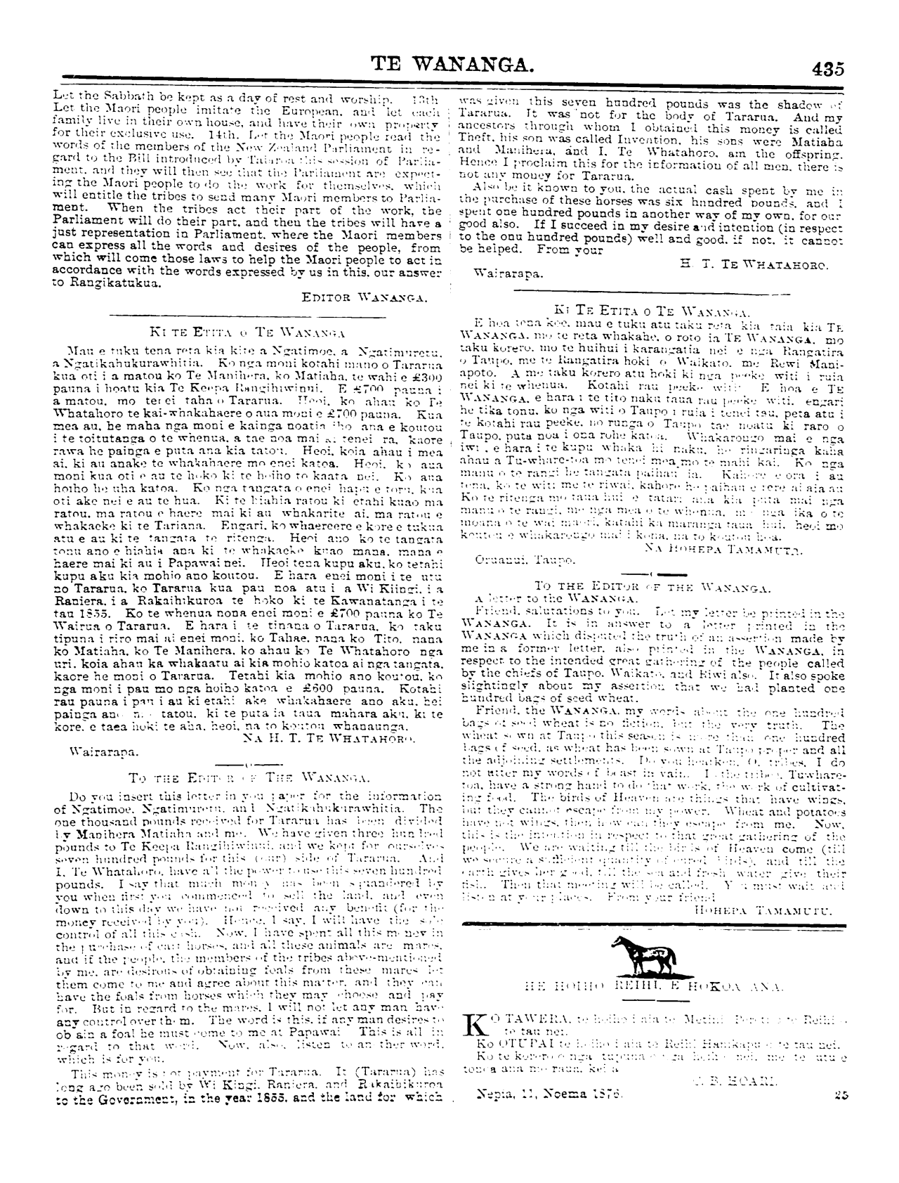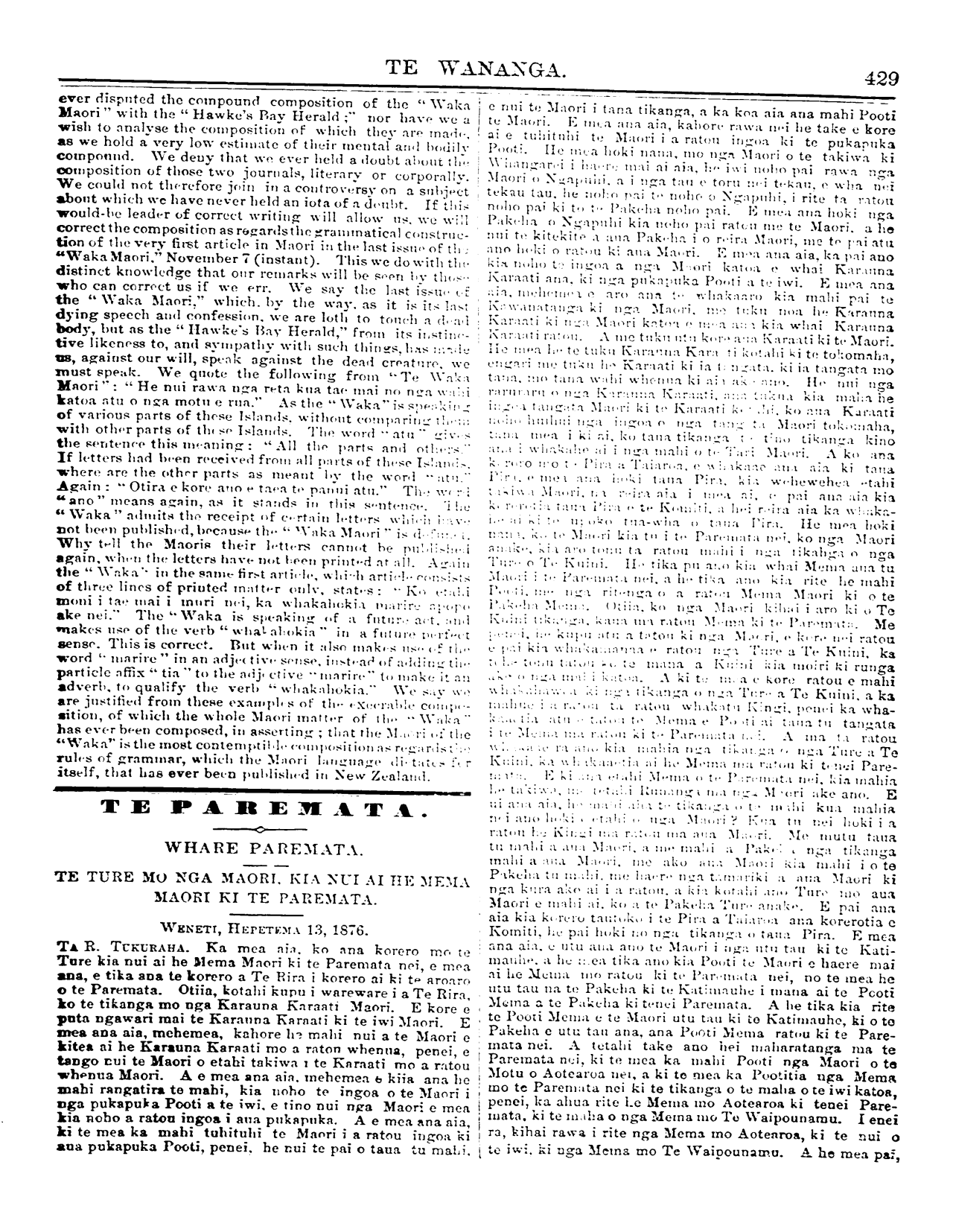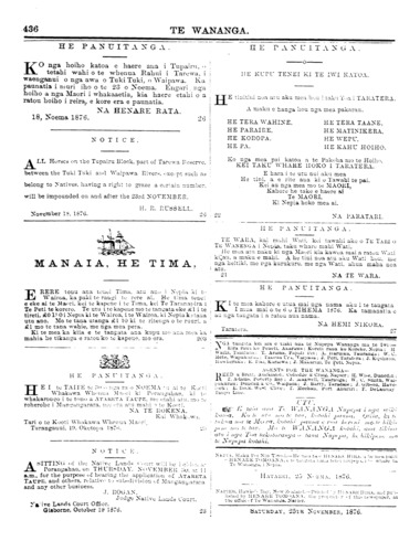 Te Wananga 1874-1878: Volume 3, Number 43. 25 November 1876 |