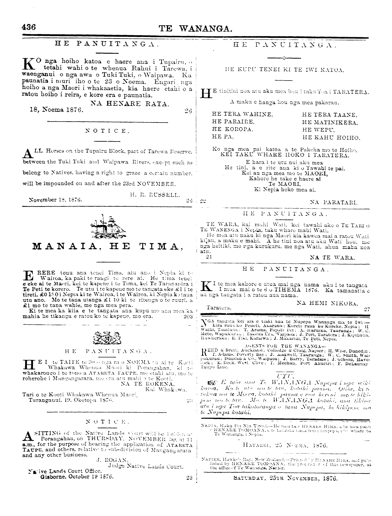 NAMA 43—44. NEPIA. HATAREI, 25 NOEMA, 1876. PUKAPUKA 3.