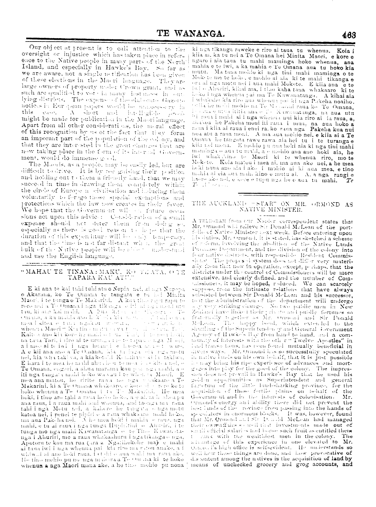whenua a Te Kawanatanga ki nga takiwa Maori.