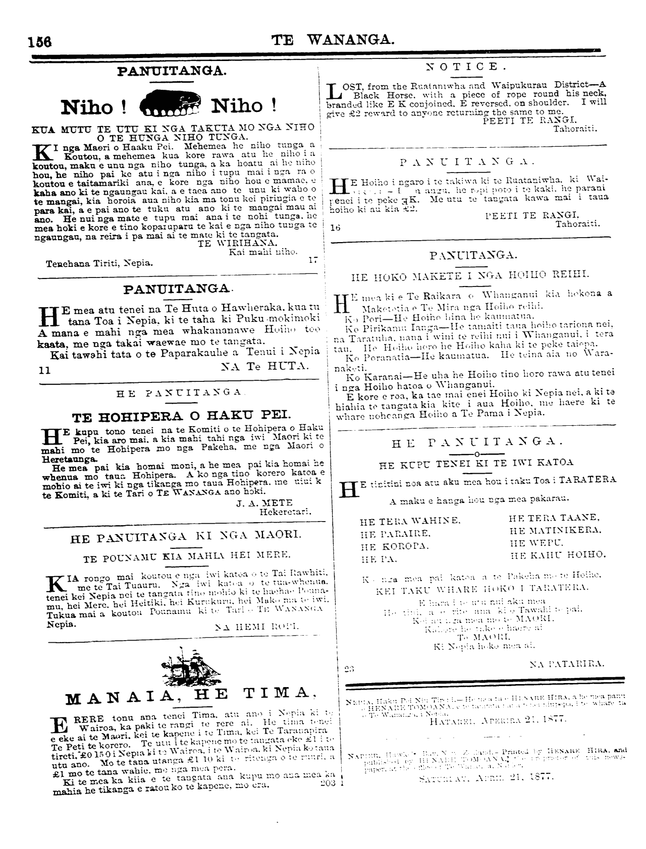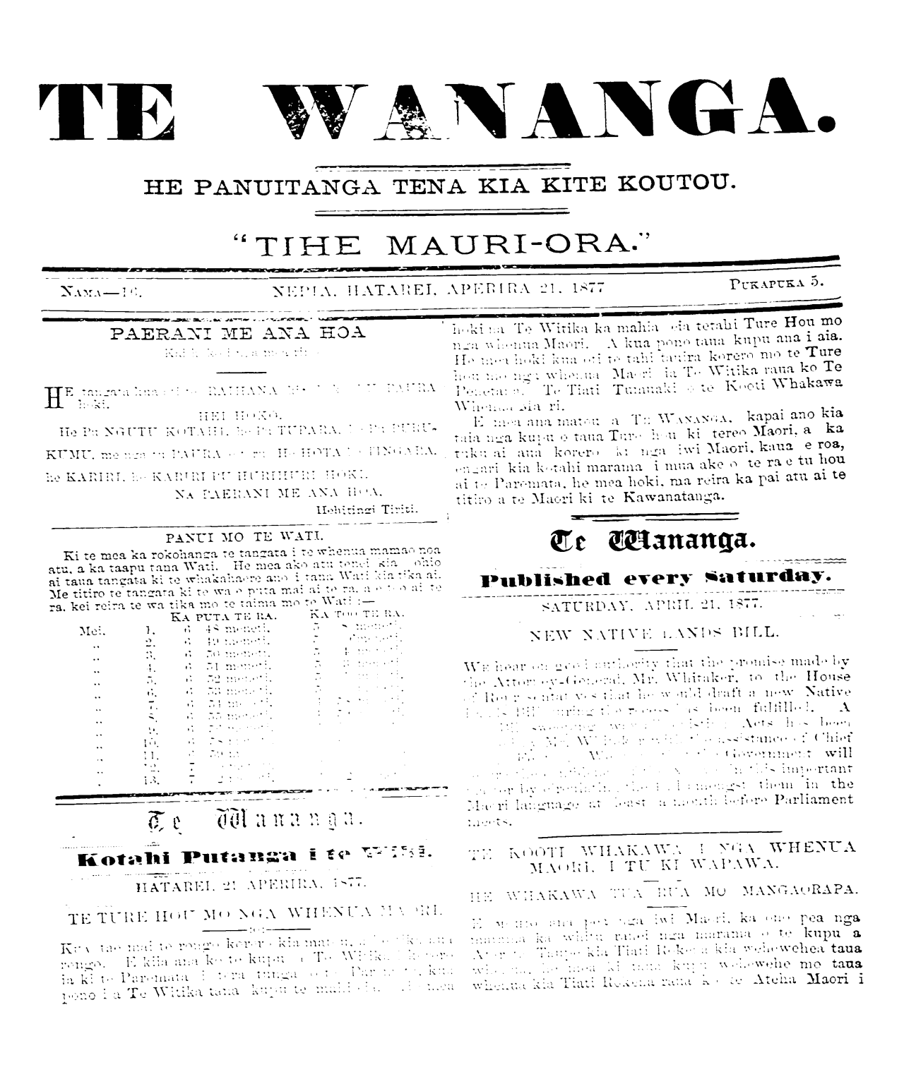 NAMA —16. NEPIA. HATAREI, APERIRA 21, 1877. PUKAPUKA 5.