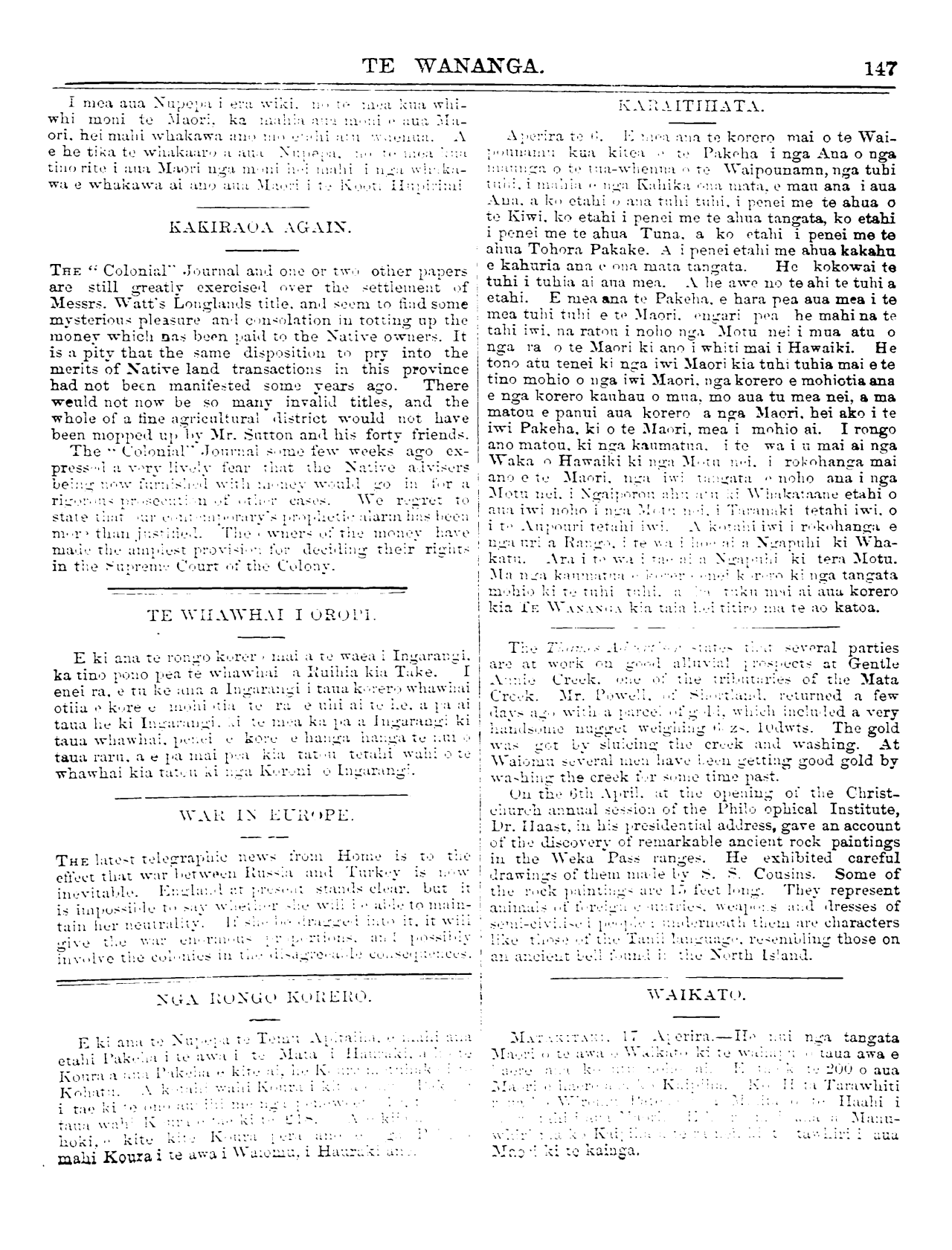 Te Wananga 1874-1878: Volume 4, Number 16. 21 April 1877 |