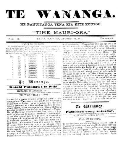Te Wananga 1874-1878: Volume 4, Number 17. 28 April 1877 |