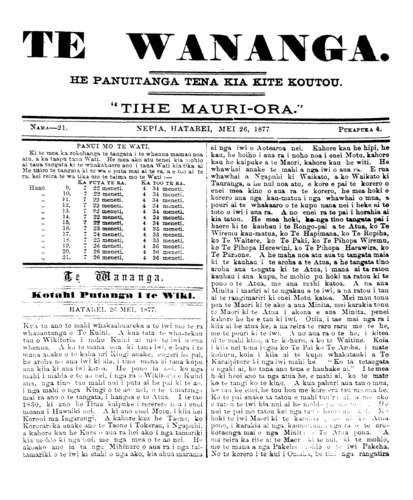 Te Wananga 1874-1878: Volume 4, Number 21. 26 May 1877 |