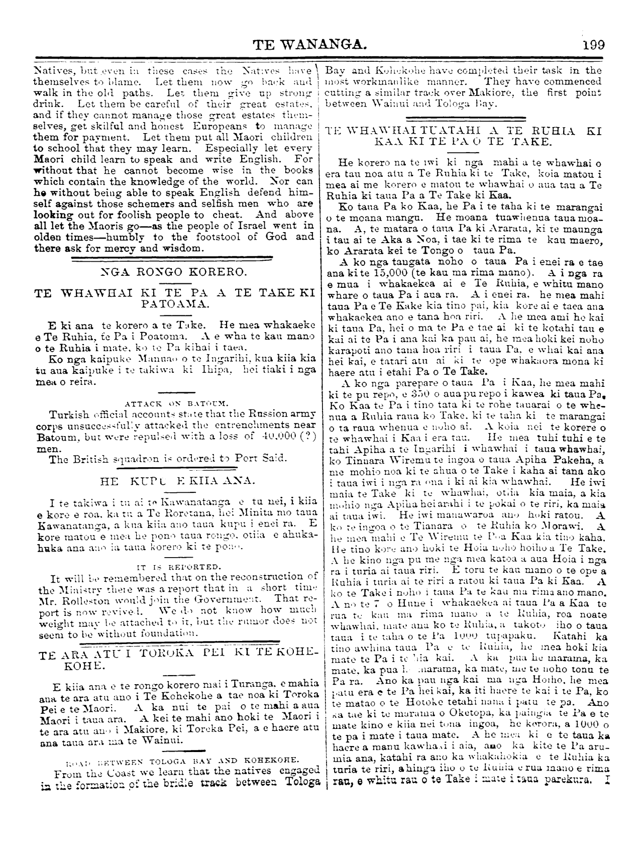 ai nga whenua a te Maori i aua Pakaha. Otiia nei