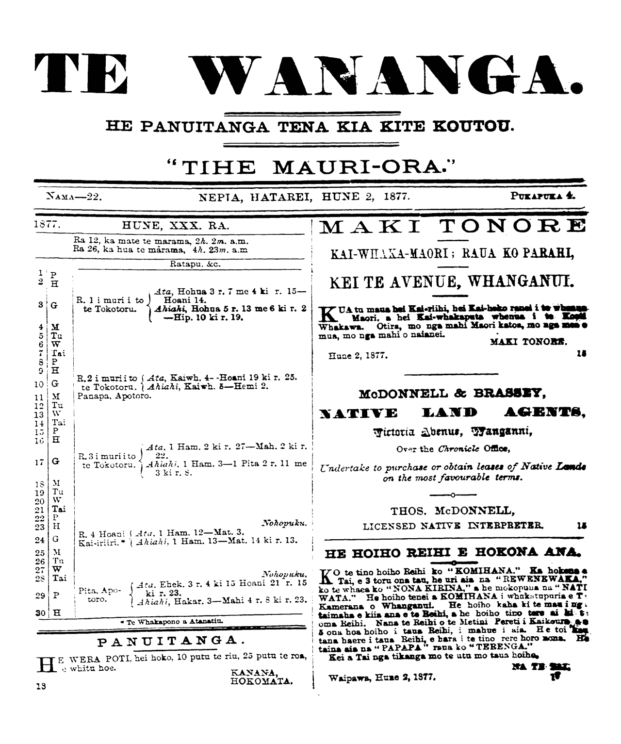 NAMA—22. NEPIA, HATAREI, HUNE 2, 1877. PUKAPUKA 4.