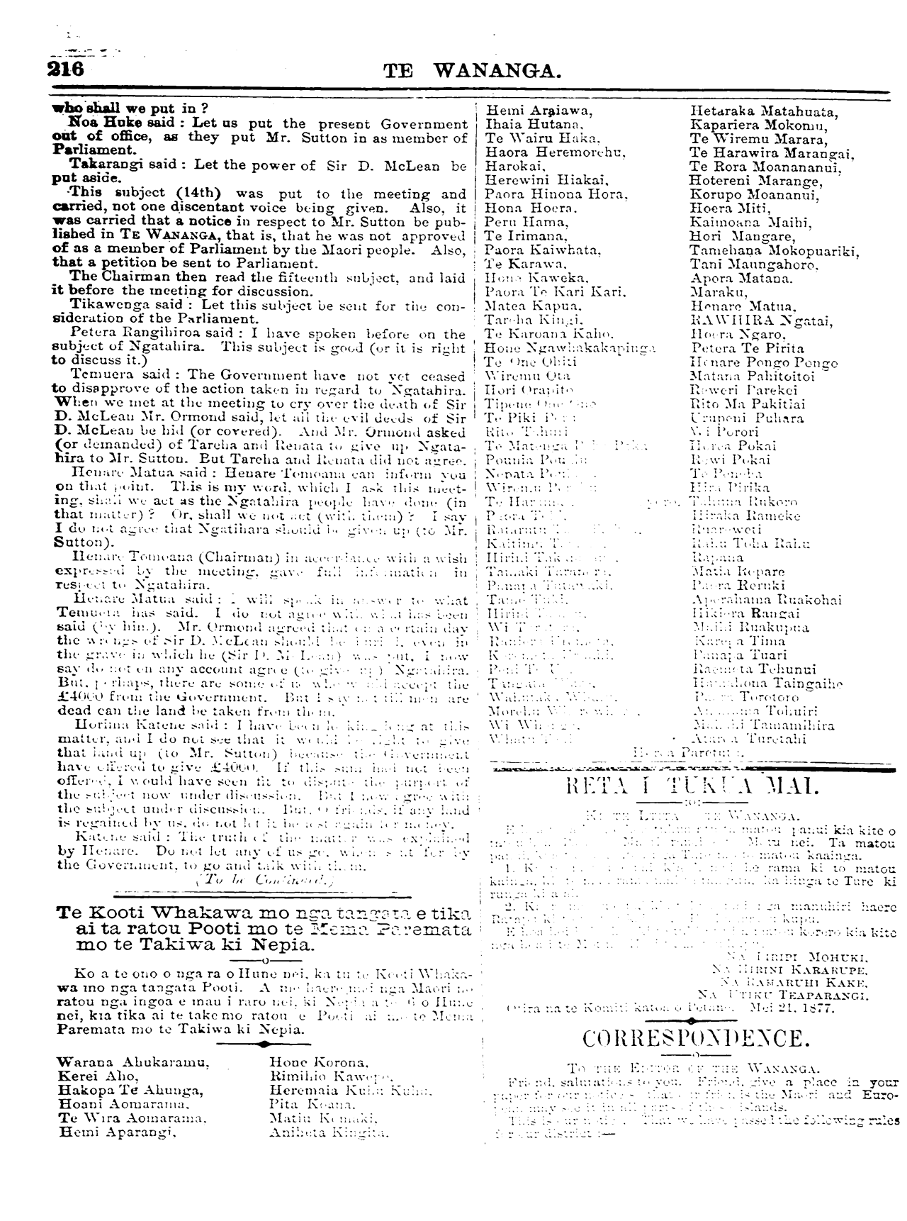 Hatepe. Wairoa. Aperira, 28, 1877.