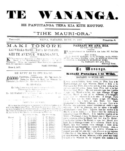 Te Wananga 1874-1878: Volume 4, Number 26. 30 June 1877 |