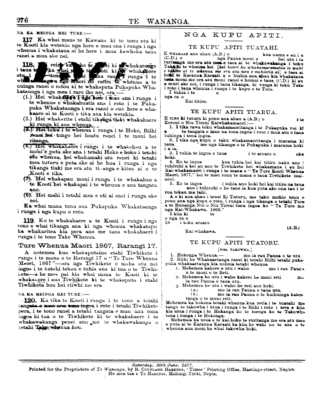 NAMA—26. NEPIA. HATAREI, HUNE 30. 1877 PUKAPUKA 4.