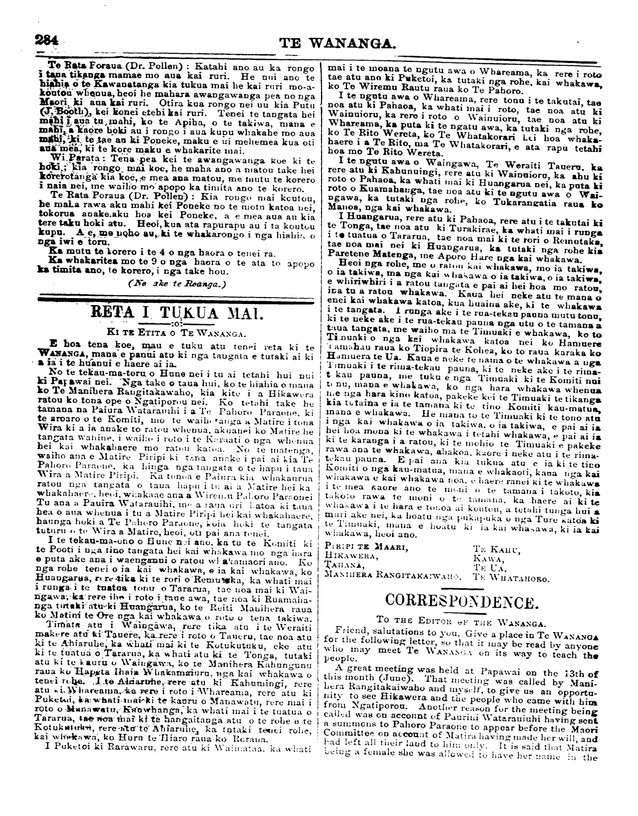 More, Kupenga Te Hou, Matena Tuheka, Maihi Kereopa,