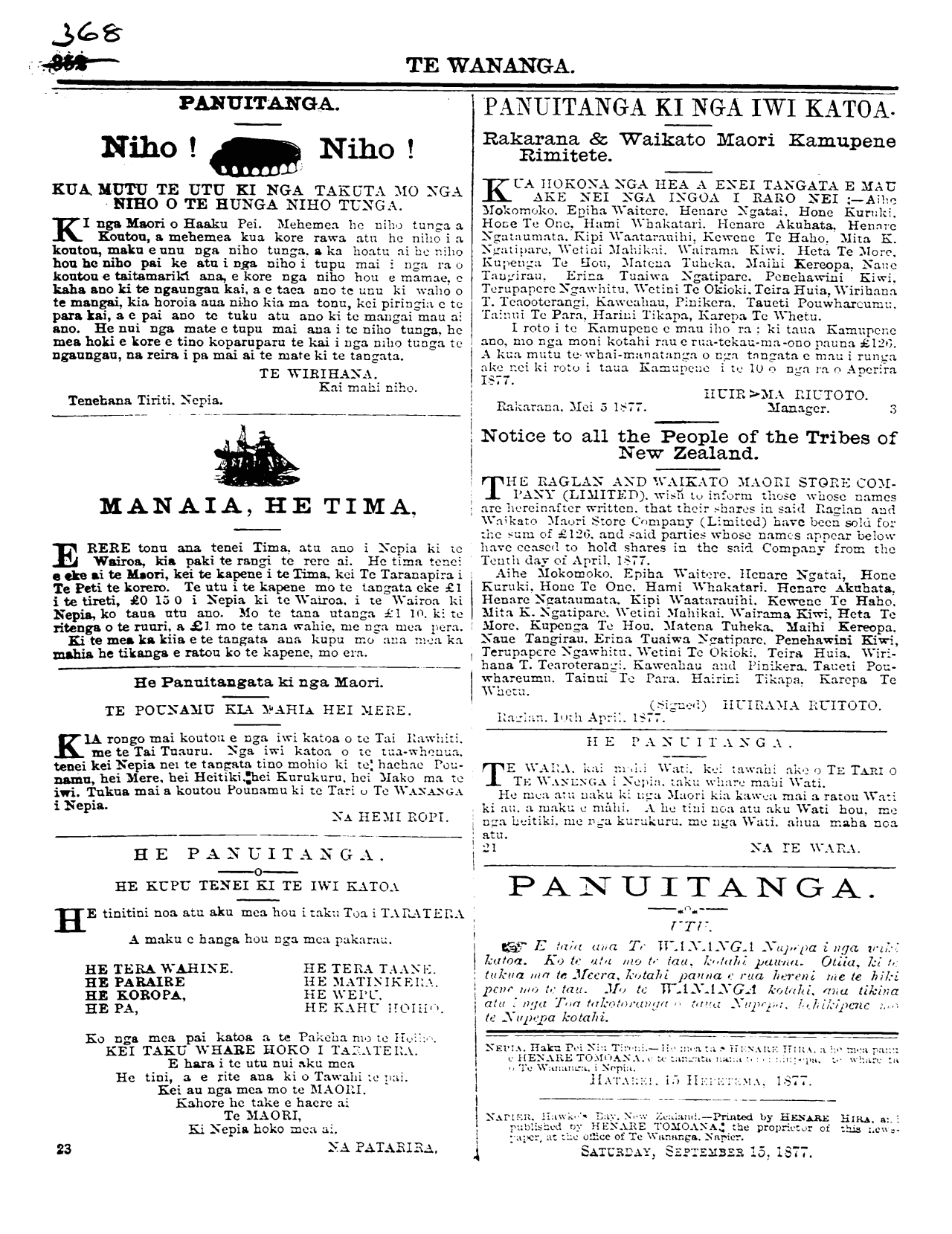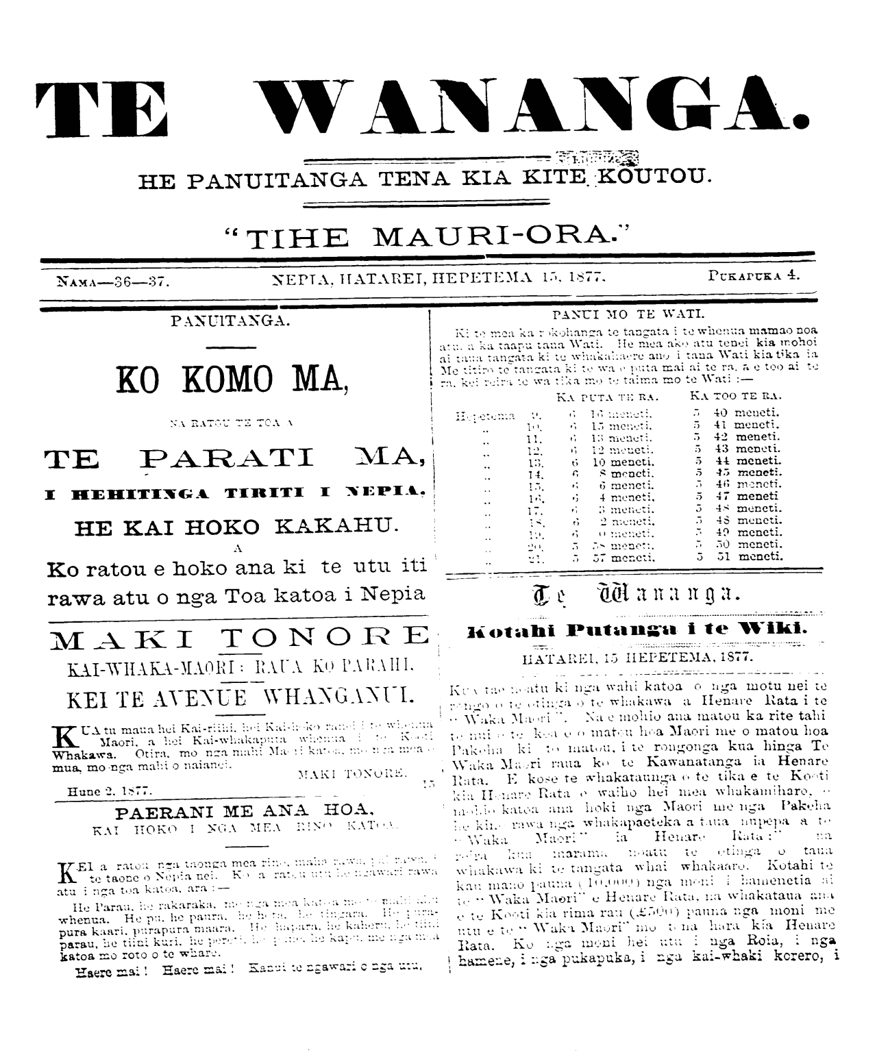 NAMA—36—37. NEPIA, HATAREI, HEPETEMA 15. 1877, PUKAPUKA 4.