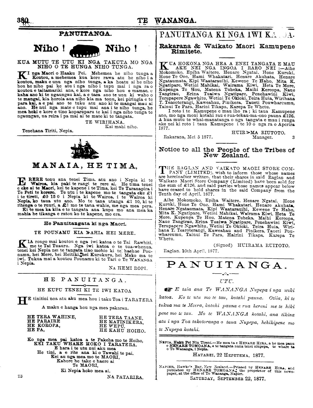 NAMA—38. NEPIA, HATAREI, HEPETEMA 22, 1877. PUKAPUKA 4.