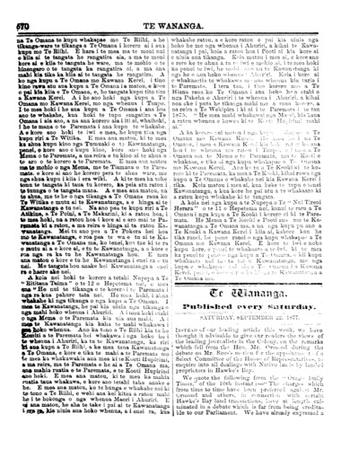 Te Wananga 1874-1878: Volume 4, Number 38. 22 September 1877 |