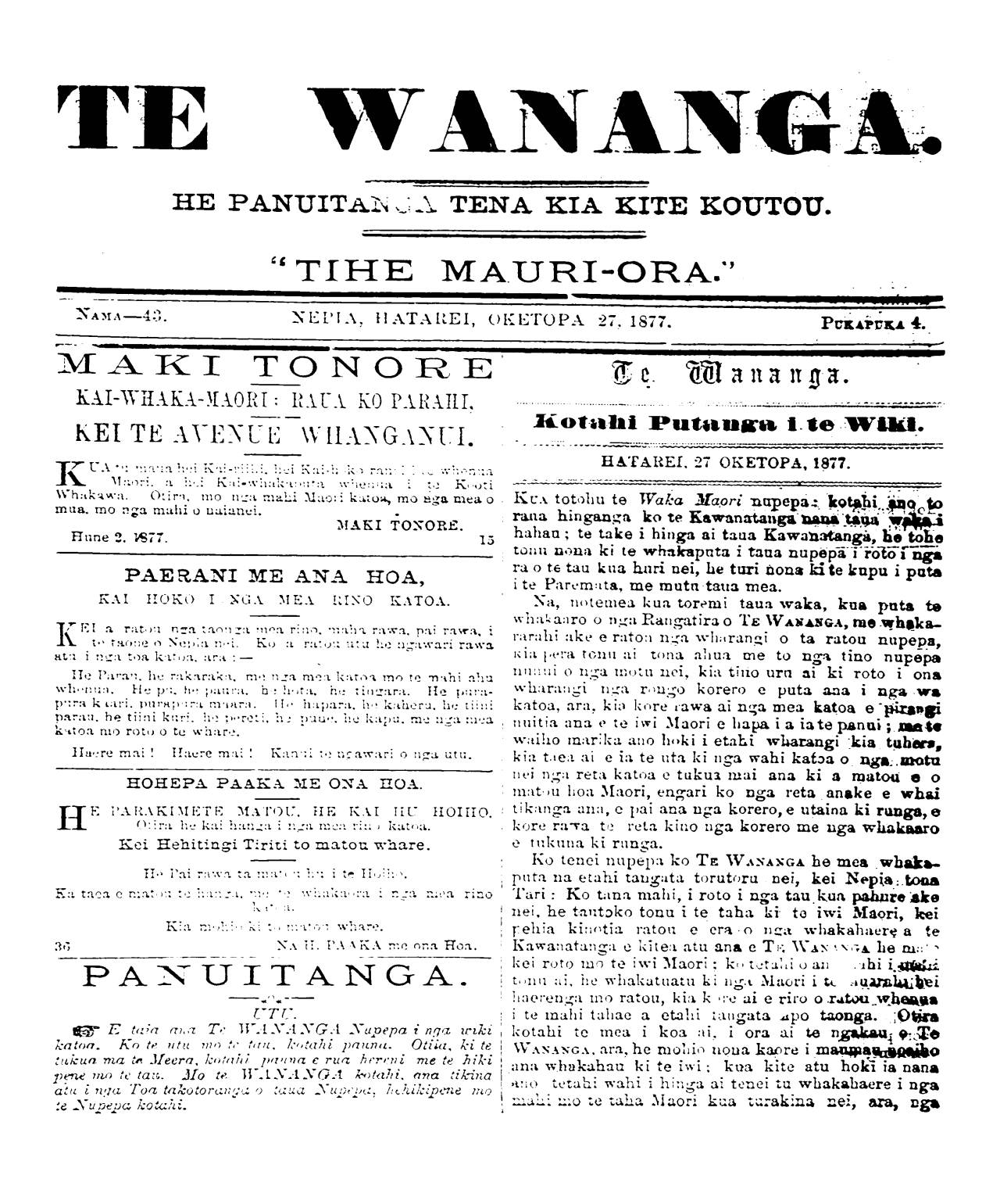 NAMA—43. NEPIA, HATAREI, OKETOPA 27.1877. PUKAPUKA 4.