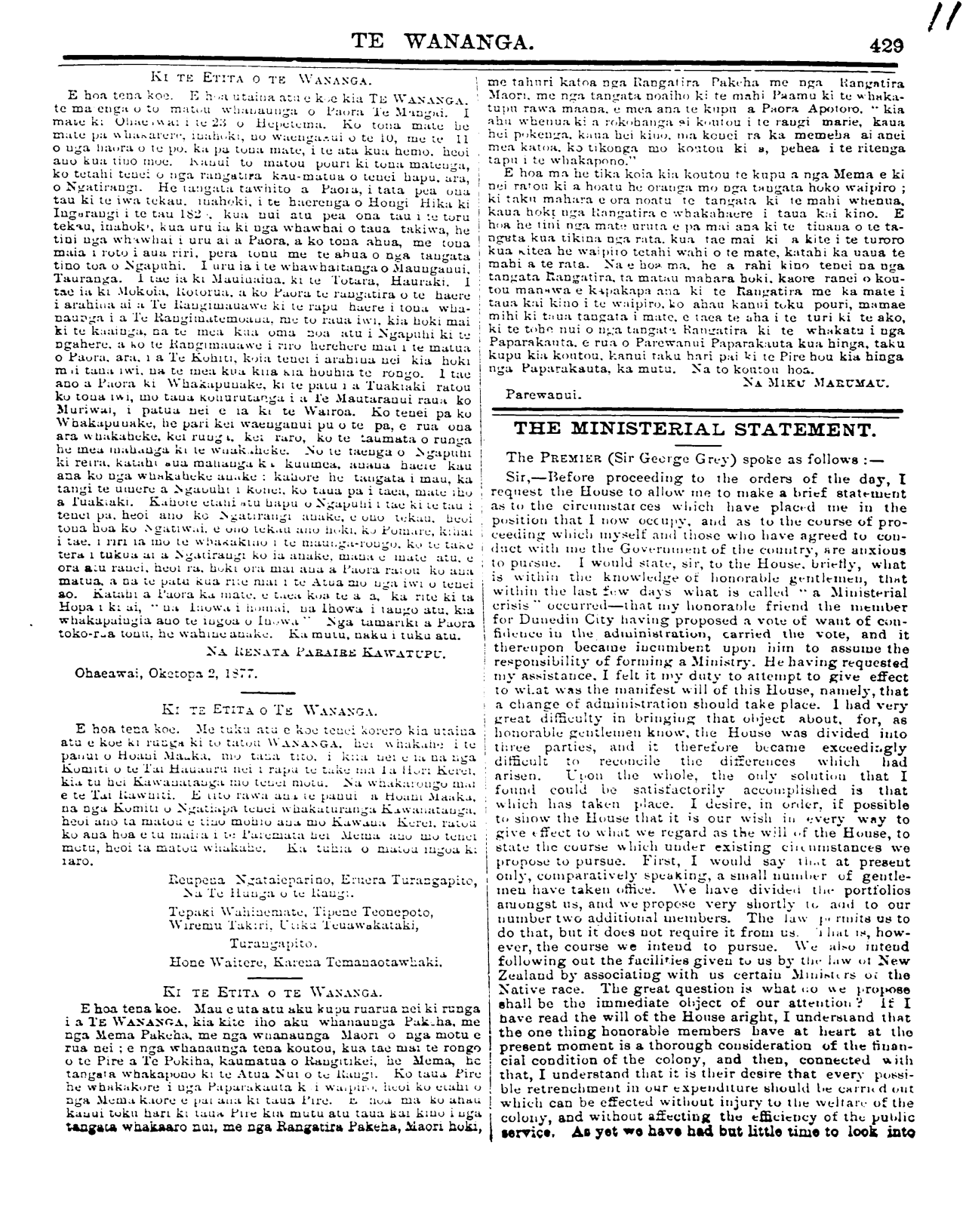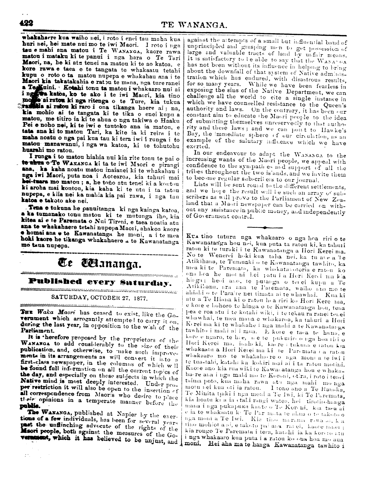 Te Wananga 1874-1878: Volume 4, Number 43. 27 October 1877 |
