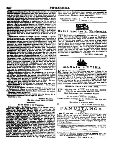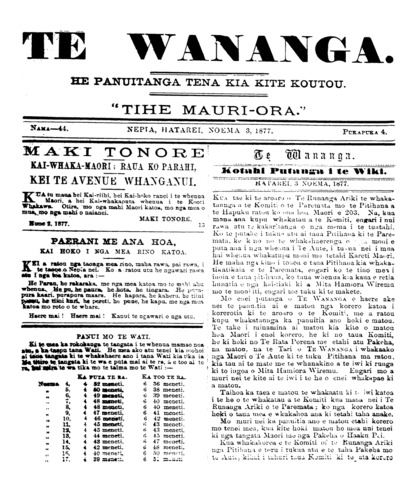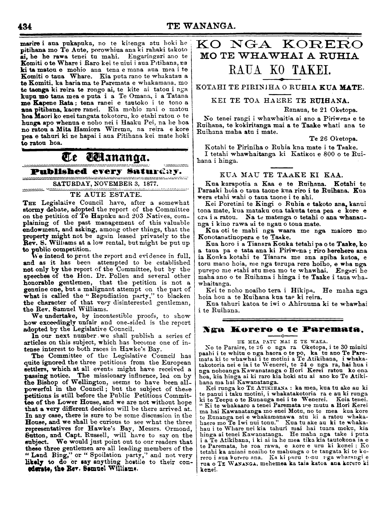 Te Wananga 1874-1878: Volume 4, Number 44. 03 November 1877 |