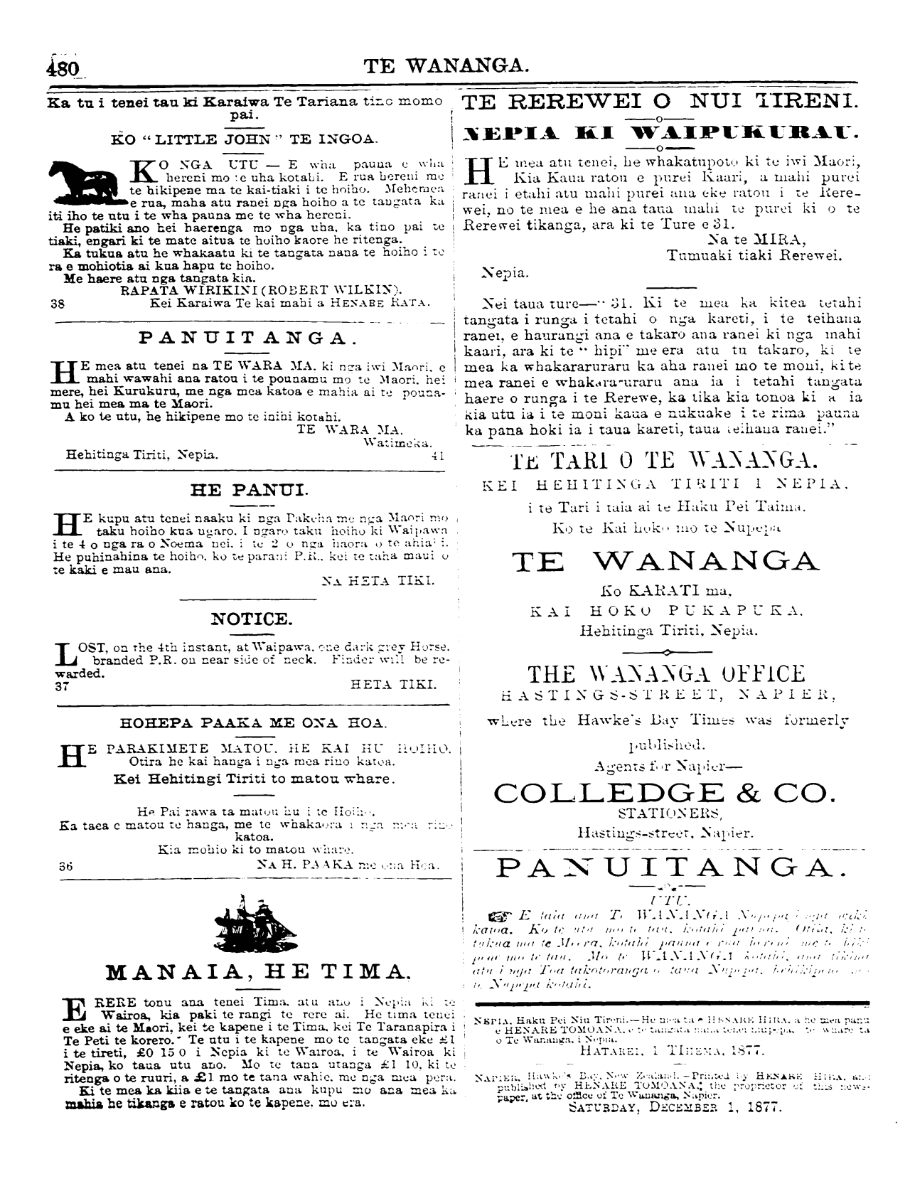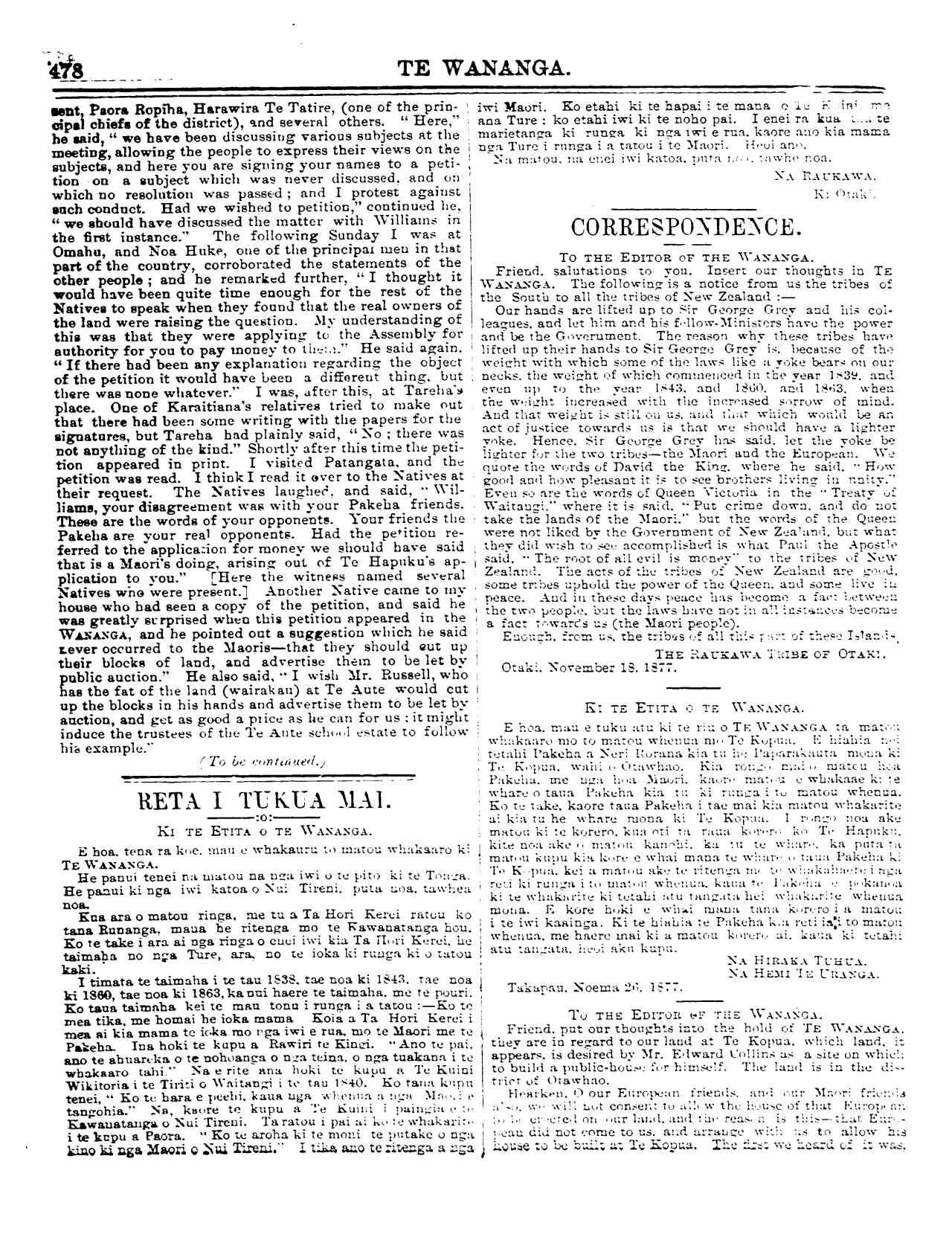 Te Wananga 1874-1878: Volume 4, Number 48. 01 December 1877 |