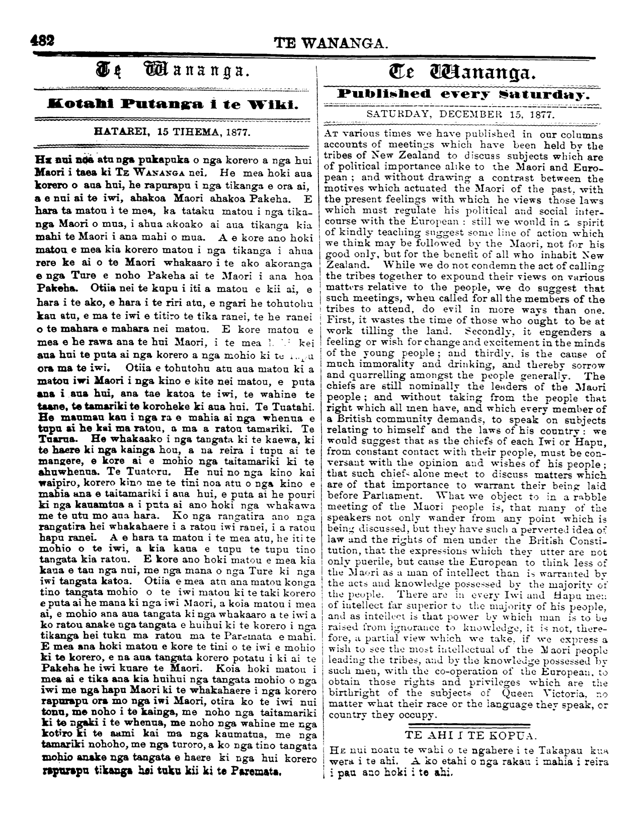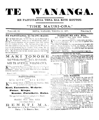 Te Wananga 1874-1878: Volume 4, Number 49. 15 December 1877 |