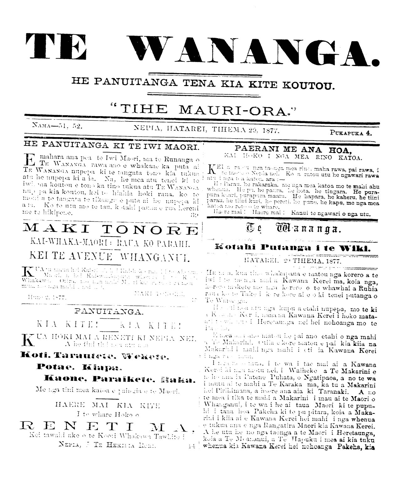 NAMA—.5I. 52. NEPIA. HATAREI, TIHEMA 29. 1877. PUKAPUKA 4.