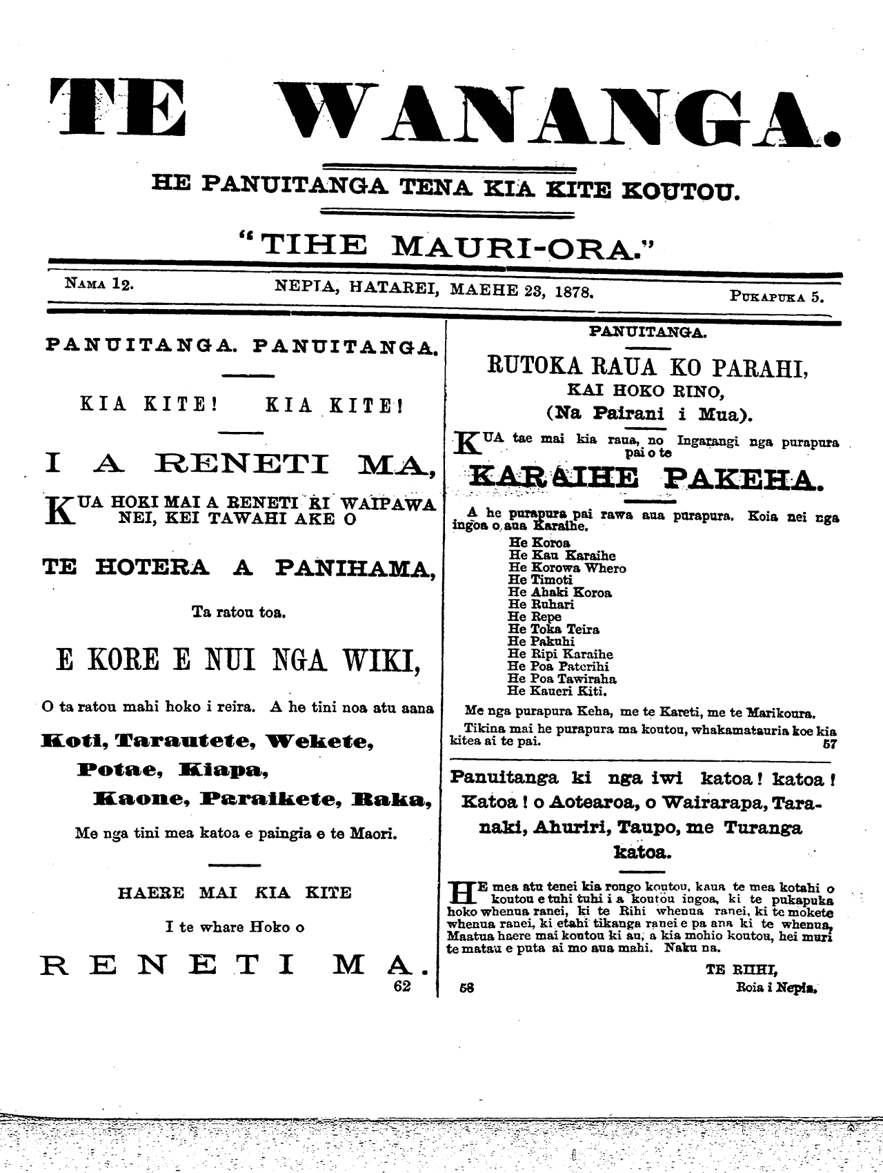 NAMA 12 NEPIA, HATAREI, MAEHE 23, 1878. PUKAPUKA 5.