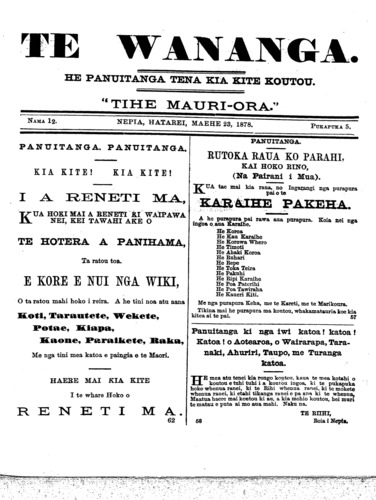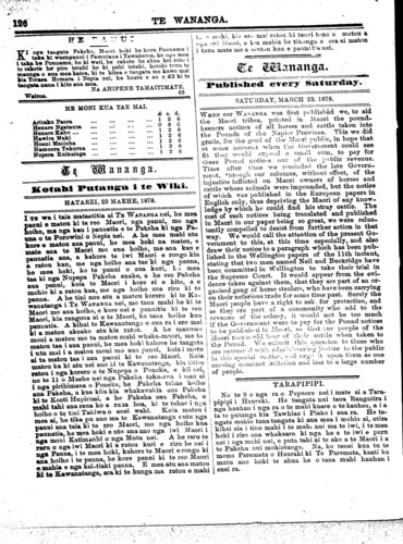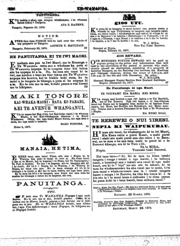 Te Wananga 1874-1878: Volume 5, Number 12. 23 March 1878 |